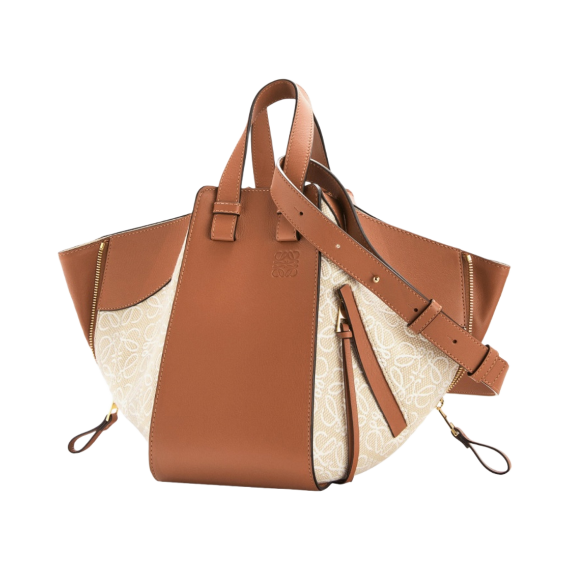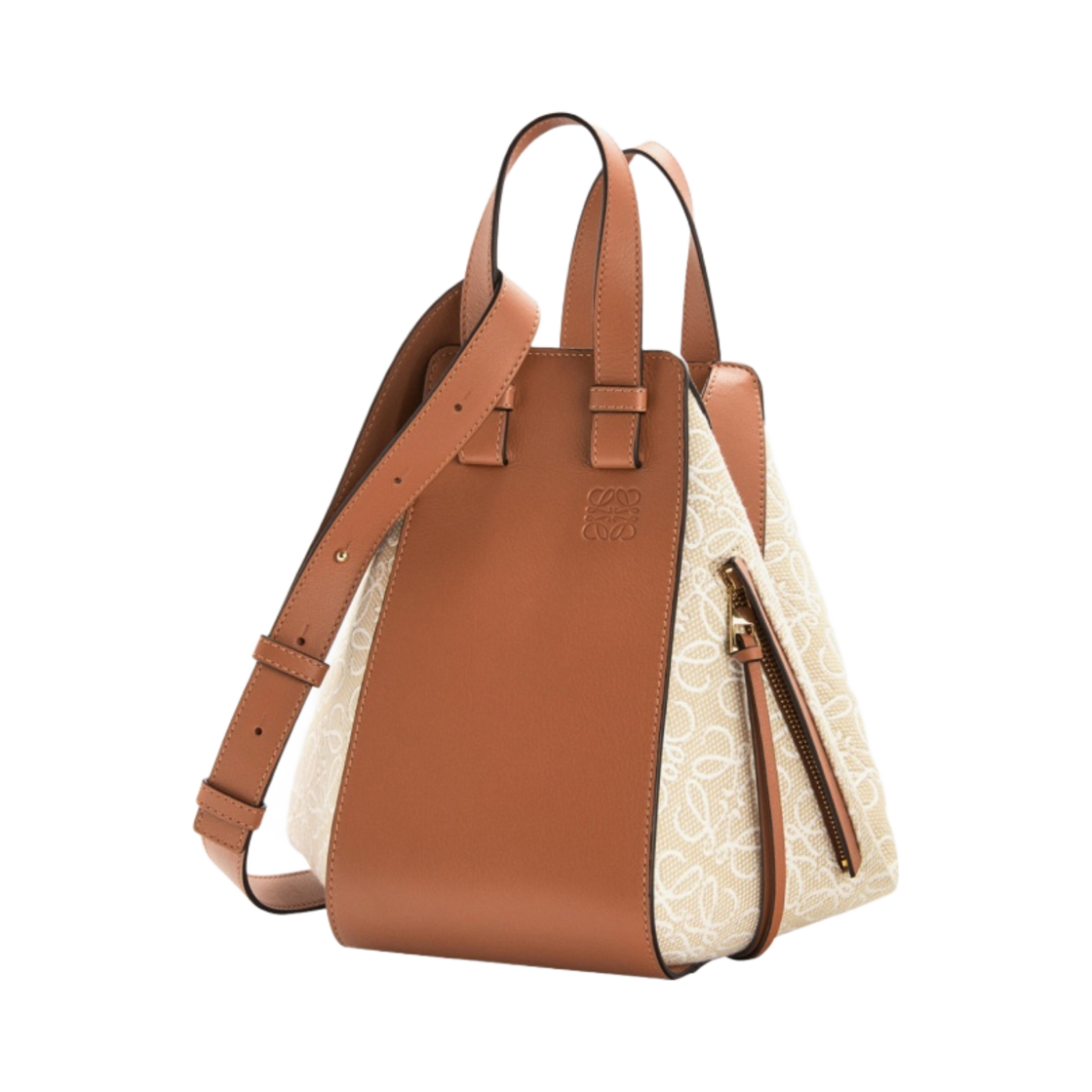 Loewe Small Hammock Bag in Anagram Jacquard and Calfskin Ecru Tan
