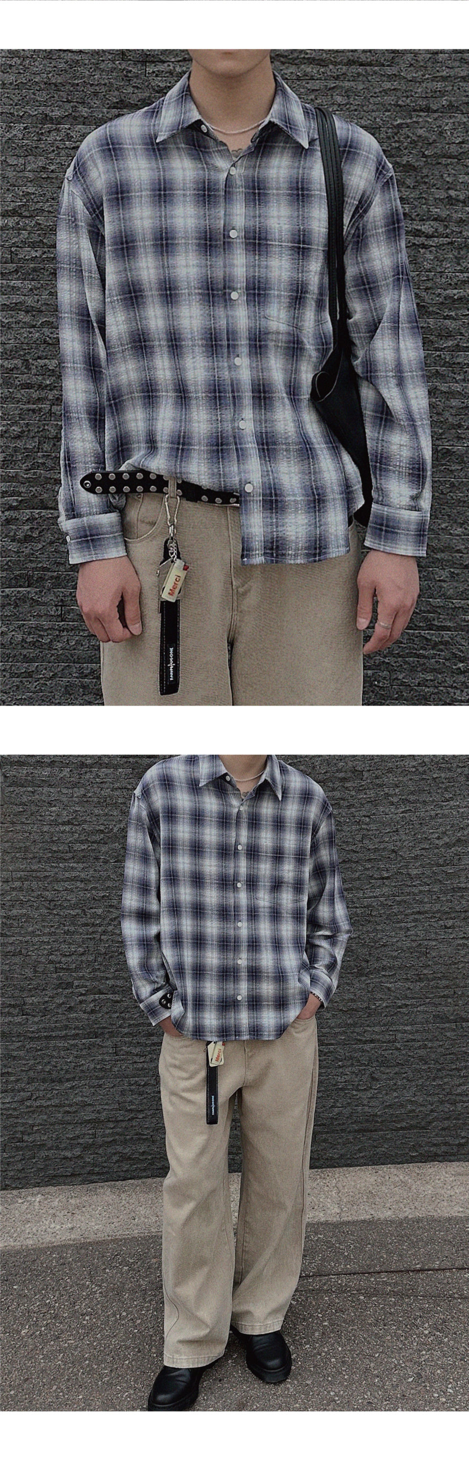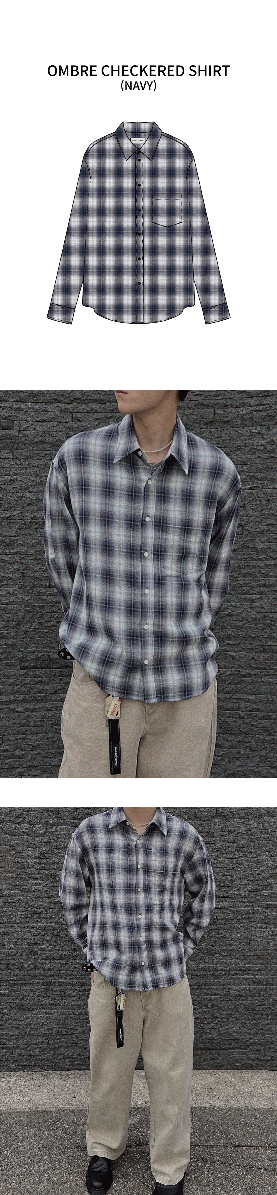 - 스탠다드 핏 실루엣 - 시어서커 터치감 - 통기성 좋은 원단 - 옴브레 체크 패턴 - 왼쪽 전면부 아웃 포켓 - 모델 180cm / 70kg