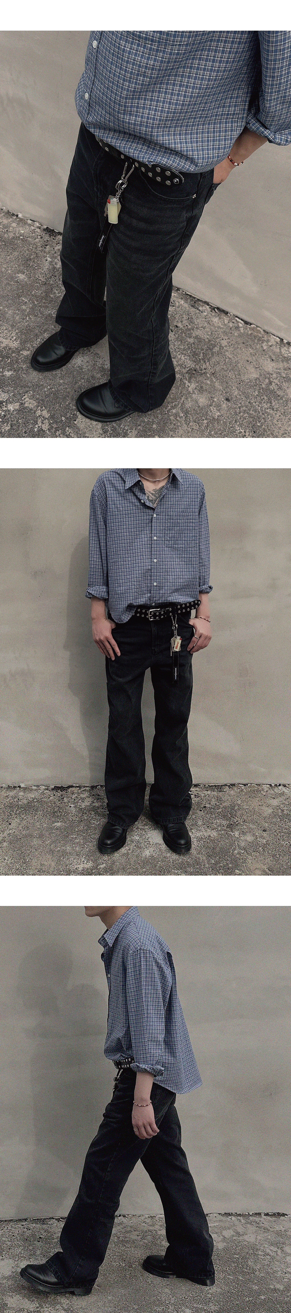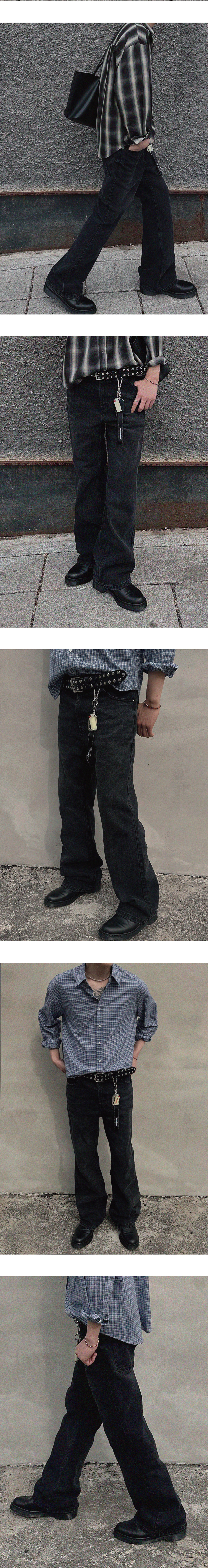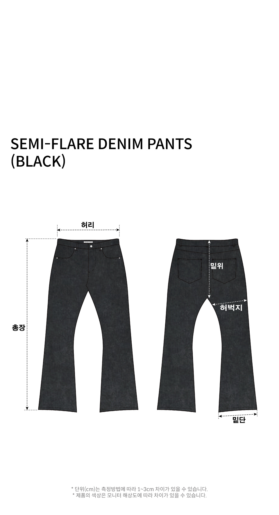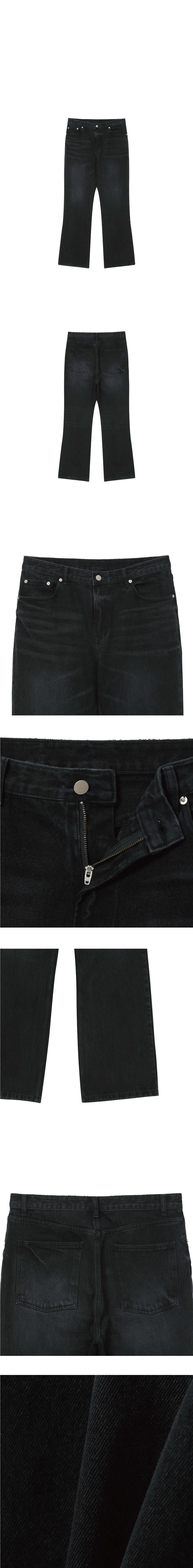 - 세미 플레어 실루엣 - 13.5oz 블랙 데님 원단 - 바이오 워싱 가공 - 캣브러쉬, 도밍고 가공 - YKK 지퍼 사용 - 허리, 밑단 디스 디테일 - 모델 180cm / 70kg * 후가공 및 워싱 공정으로 인해 개체에 따라 톤 차이 및 약간의 데미지가 있을 수 있습니다.