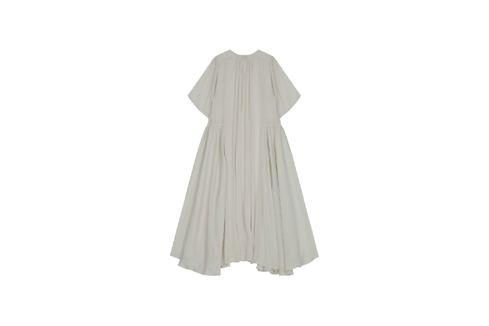 - 여유로운 핏의 하프슬리브 드레스 - 스티치가 보이지 않는 깔끔한 크루넥 라인 마감 - 부드러운 촉감의 원단으로 편안한 착용감 - 뒷부분과 허리 라인의 셔링 디테일로 드레시한 느낌