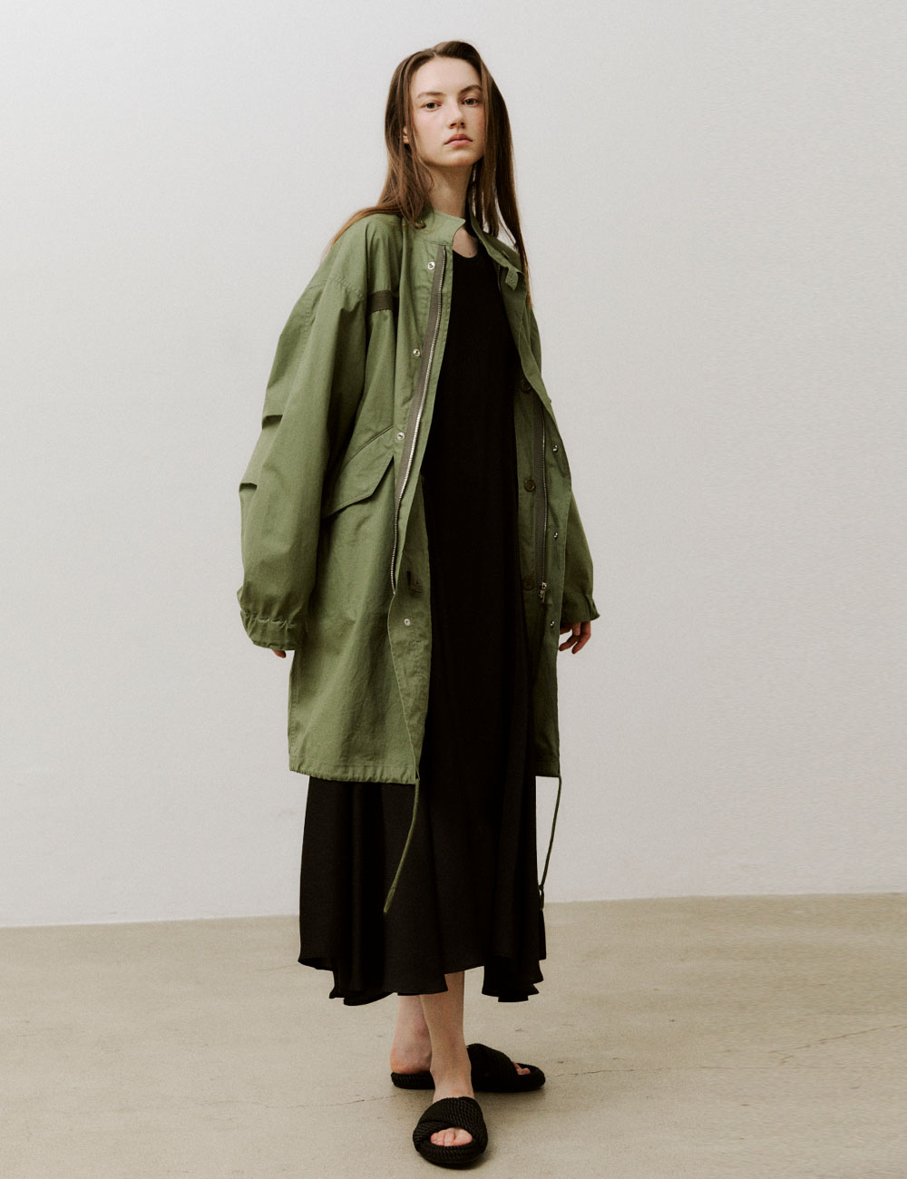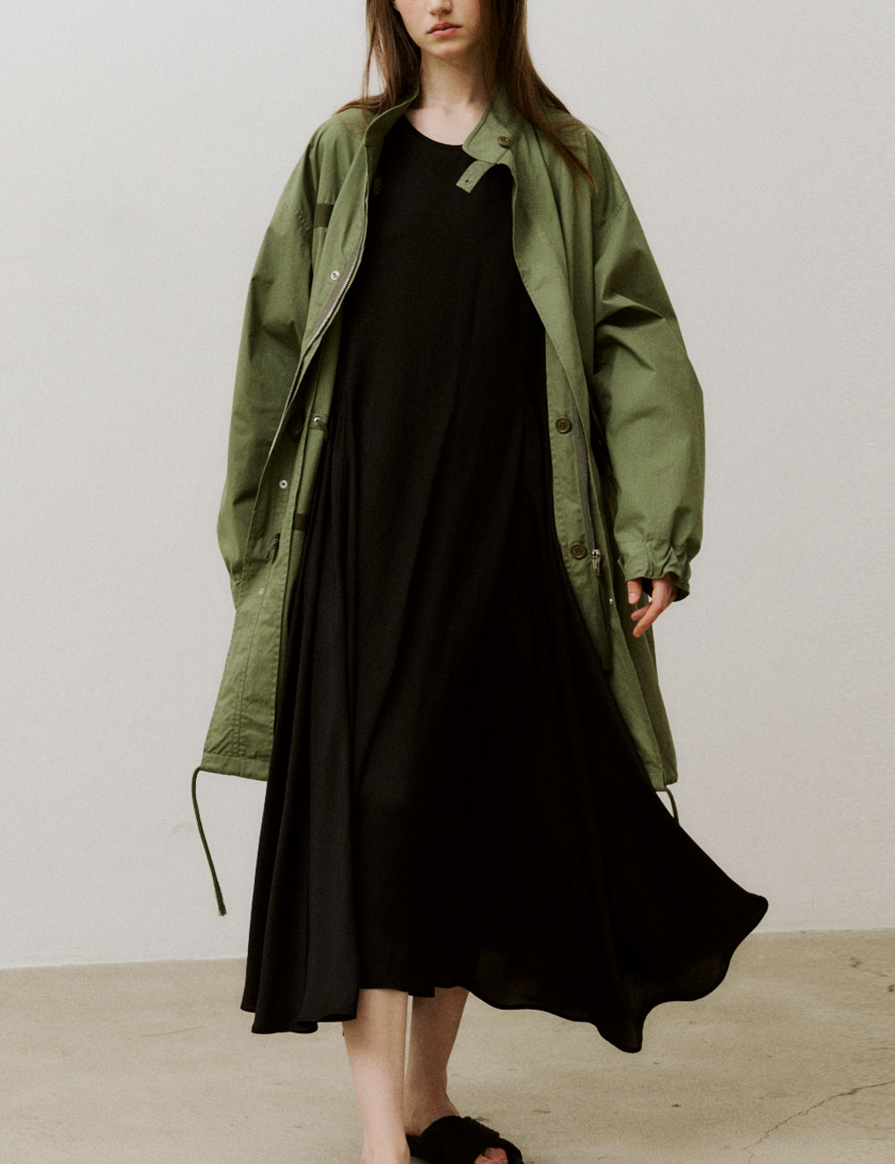 - 여유로운 핏의 하프슬리브 드레스 - 스티치가 보이지 않는 깔끔한 크루넥 라인 마감 - 부드러운 촉감의 원단으로 편안한 착용감 - 뒷부분과 허리 라인의 셔링 디테일로 드레시한 느낌