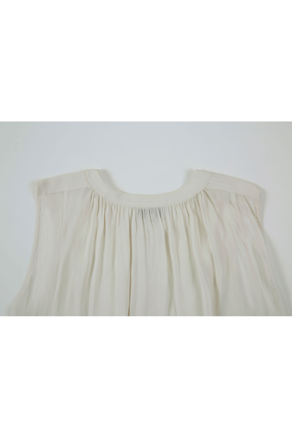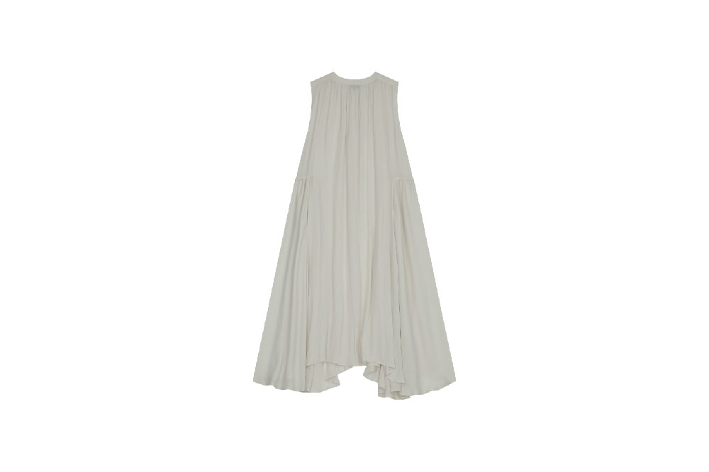 - 여유로운 핏의 슬리브리스 드레스 - 크루넥과 히든 버튼 여밈 - 부드러운 촉감의 원단으로 편안한 착용감 - 뒷부분과 허리 라인의 셔링 디테일로 드레시한 느낌