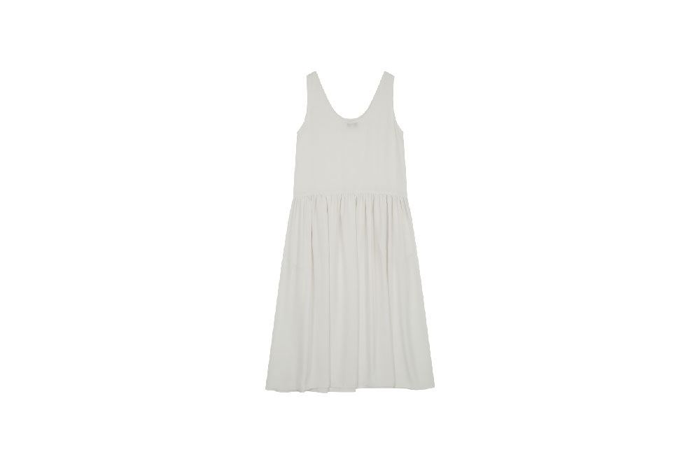 - 여유로운 핏의 탱크탑 드레스 - 허리 라인의 셔링 디테일로 드레시한 느낌 - 넥라인과 암홀라인에 스티치가 보이지 않는 깔끔한 마감처리 - 양 사이드 포켓