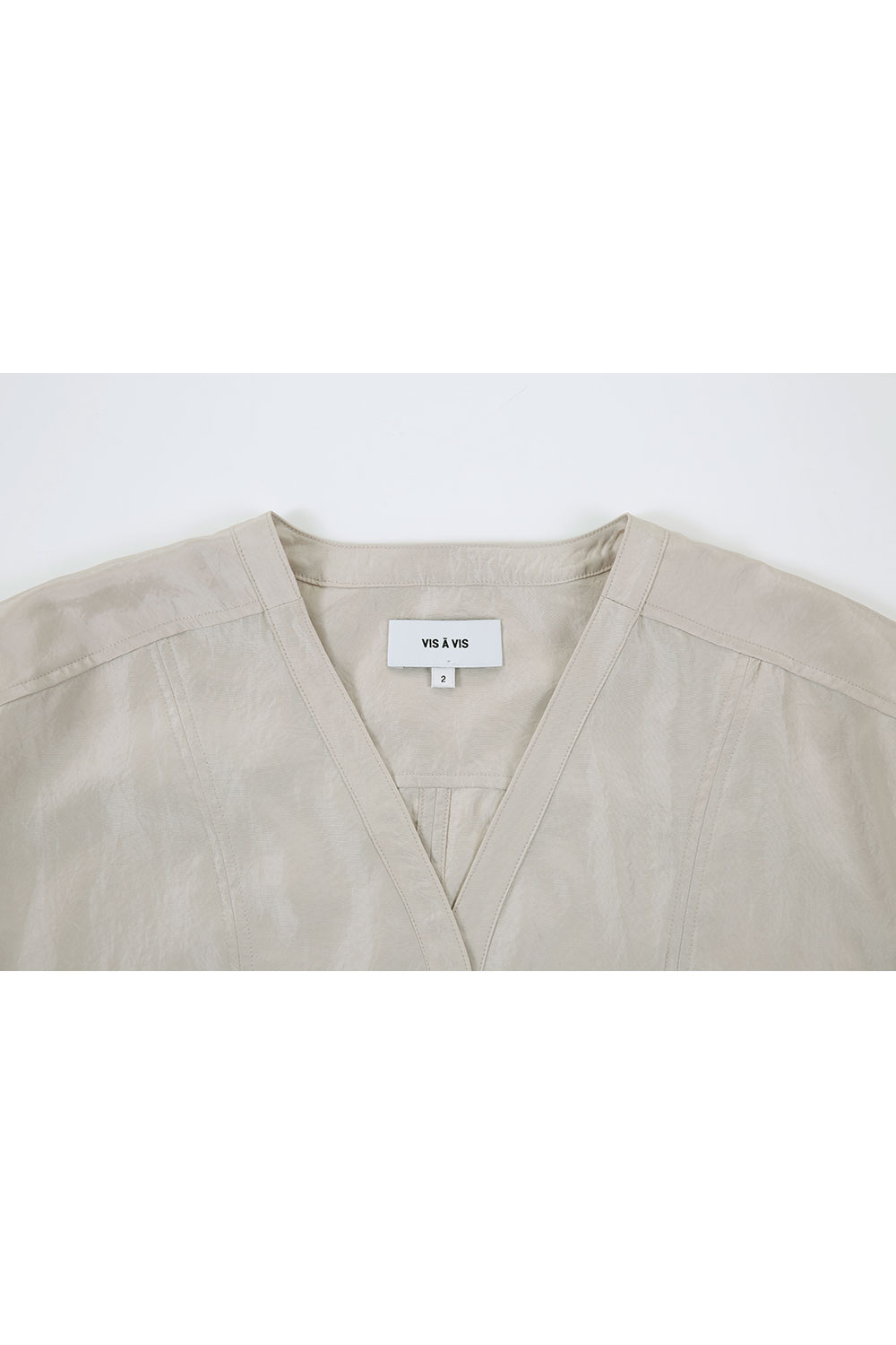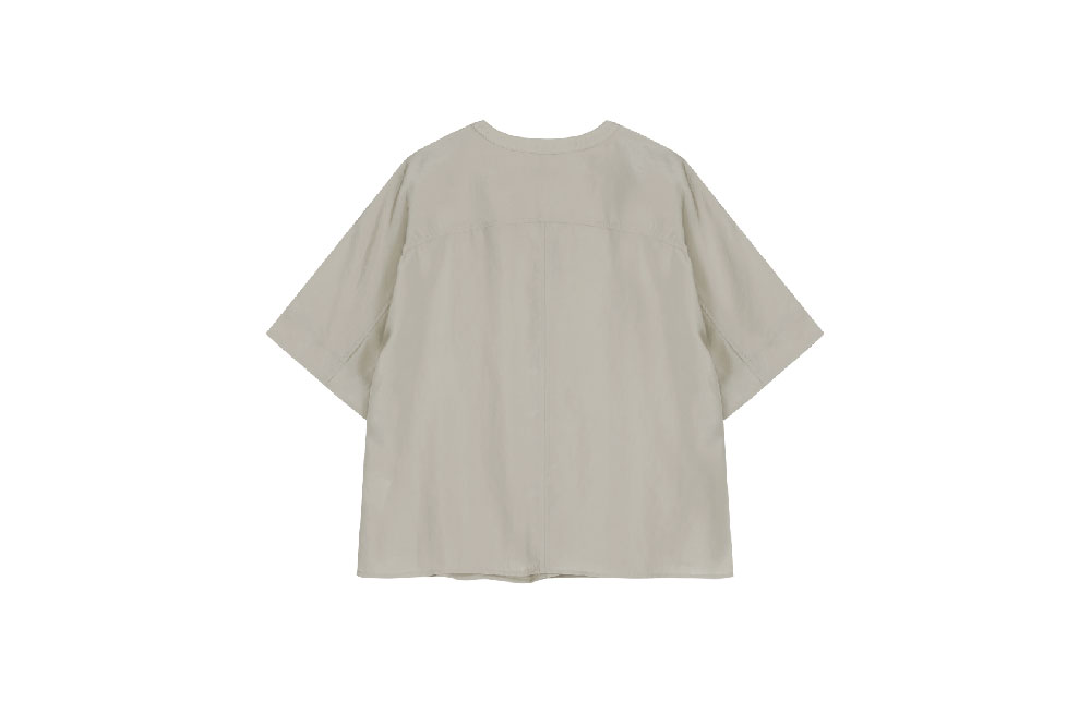 - 돌먼 슬리브의 브이넥 블라우스 - 버튼 여밈과 더블 요크 - 원단 특유의 불규칙한 주름과 텍스처로 드레시한 느낌 - 쿨한 터치감과 주름 방지가 뛰어난 해외 수입 원단을 사용하여 편안한 착용감