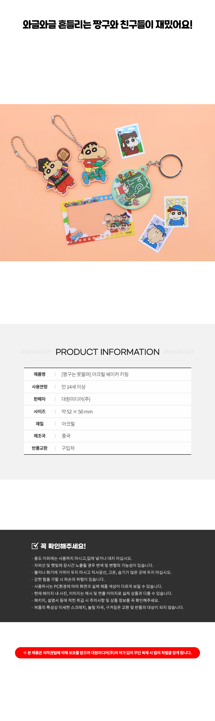 대원미디어 짱구는못말려 픽셀짱구 아크릴 쉐이커 키링