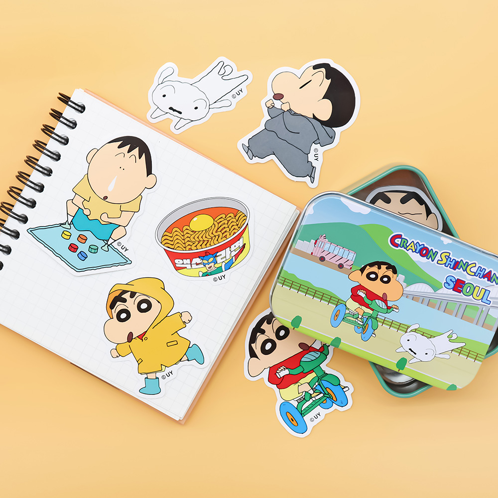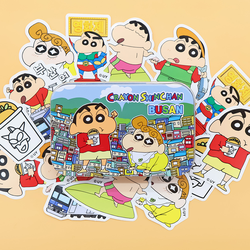 Daewonmedia Crayon Shin Chan Sticker Tin Case Set Busan