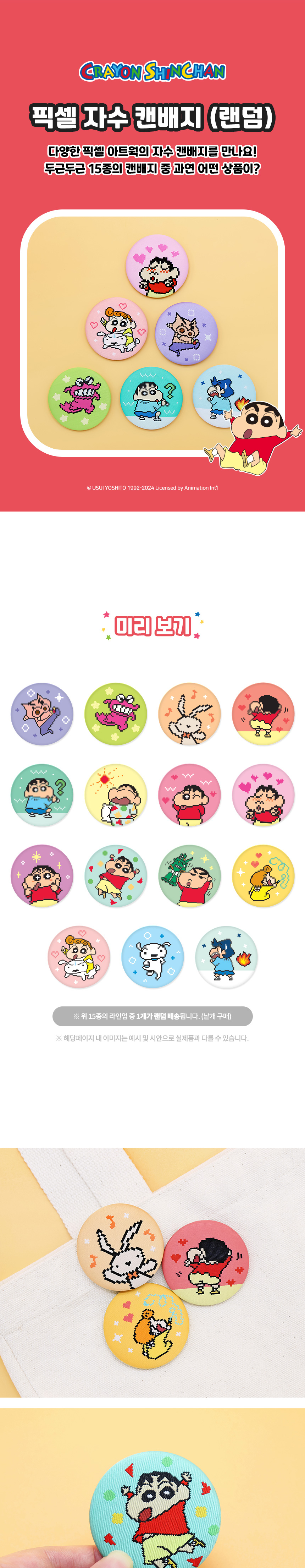 대원미디어 짱구는못말려 픽셀 자수 캔배지 랜덤단품