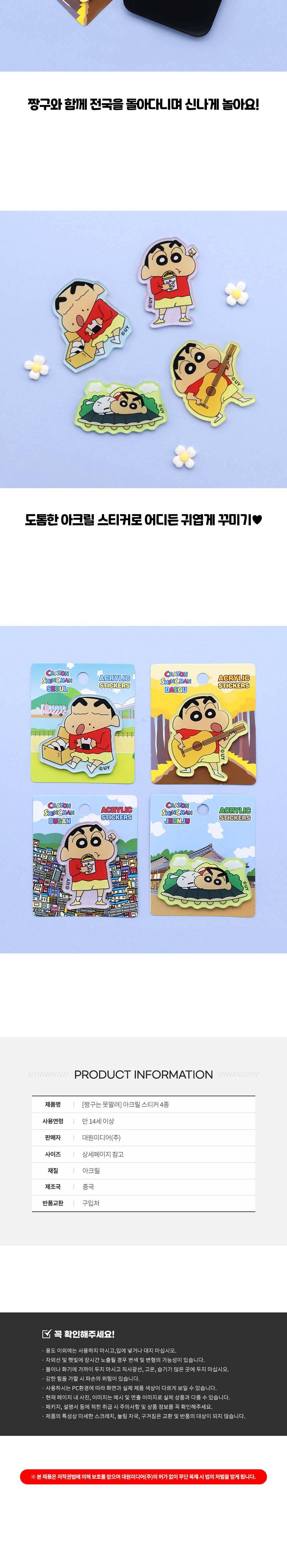 대원미디어 짱구는못말려 지역테마 아크릴 스티커 전주