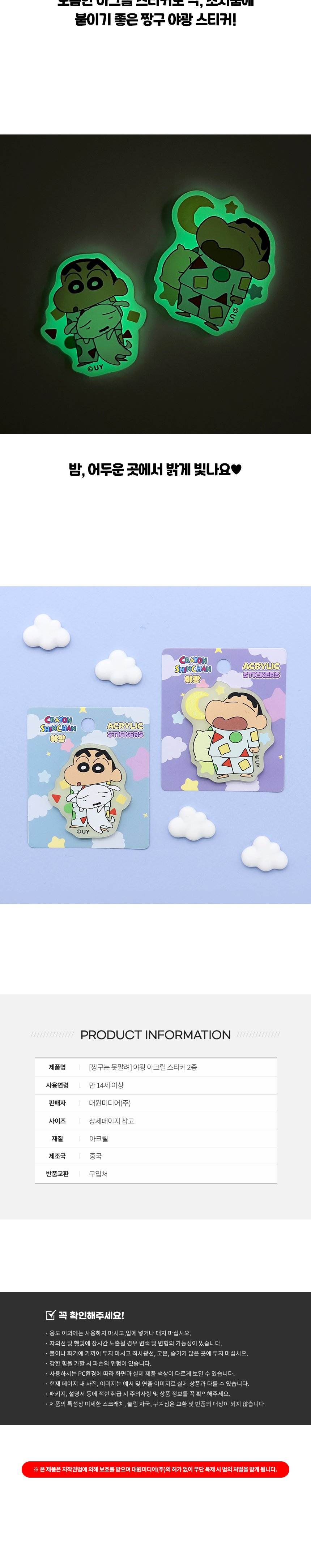 대원미디어 짱구는못말려 아크릴 야광 스티커 파자마 짱구