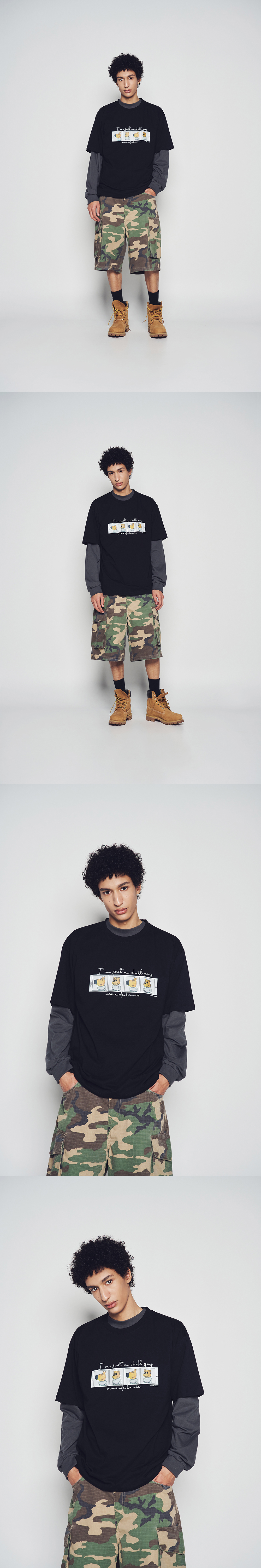 아크메드라비 칠가이 포토 4컷 숏 슬리브 티셔츠 블랙