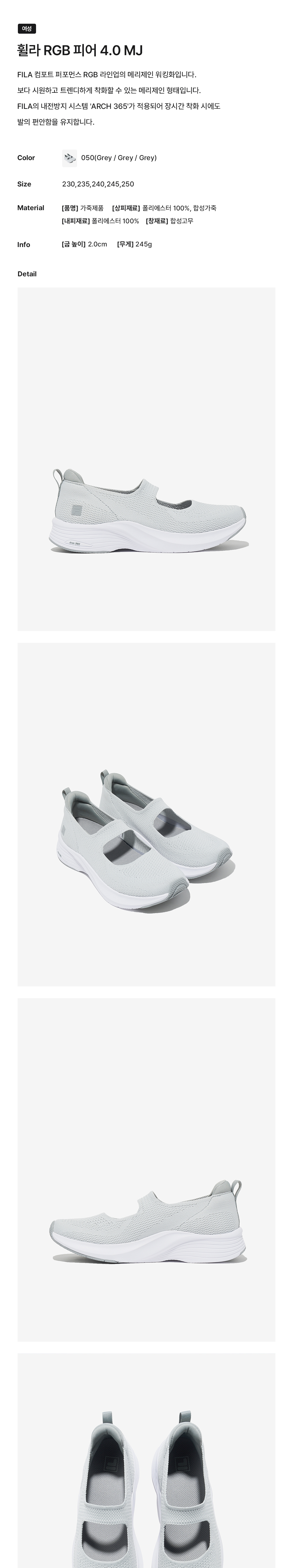 FILA 컴포트 퍼포먼스 RGB 라인업의 메리제인 워킹화입니다. 보다 시원하고 트렌디하게 착화할 수 있는 메리제인 형태입니다. FILA의 내전방지 시스템 `ARCH 365`가 적용되어 장시간 착화 시에도 발의 편안함을 유지합니다.