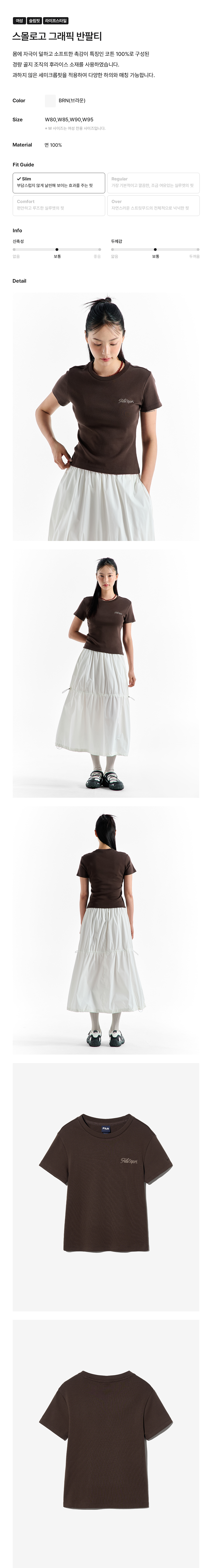 몸에 자극이 덜하고 소프트한 촉감이 특징인 코튼 100%로 구성된 경량 골지 조직의 후라이스 소재를 사용하였습니다. 과하지 않은 세미크롭핏을 적용하여 다양한 하의와 매칭 가능합니다.