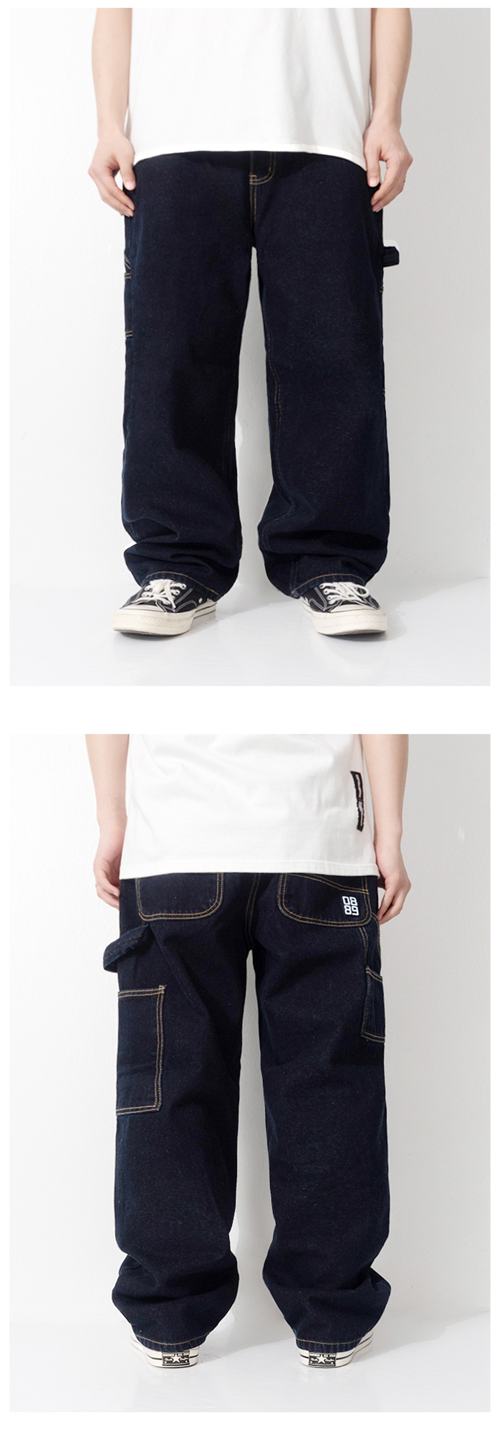 큐티에잇 가먼츠 로우 데님 카펜터 팬츠 딥블루