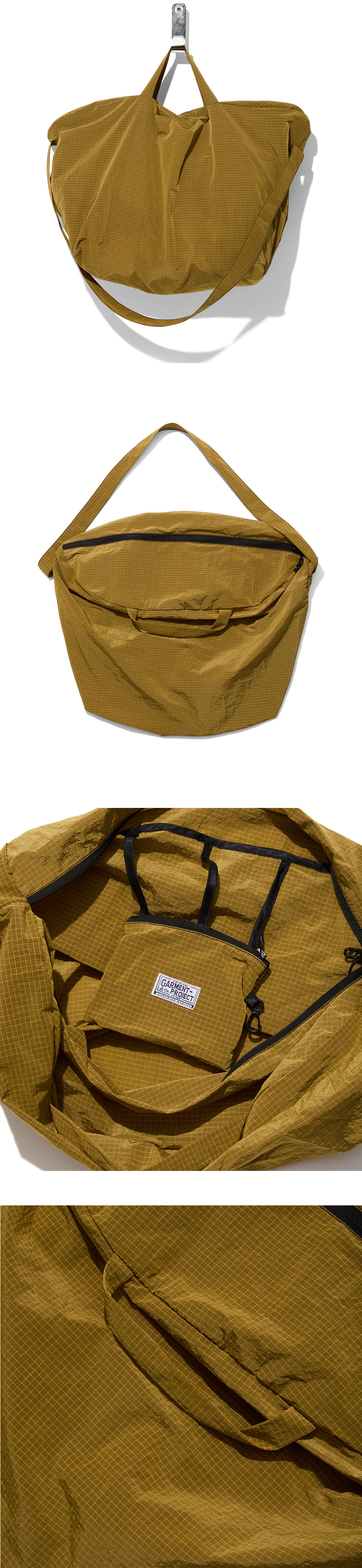 립스탁 나일론 조직의 원단을 사용하여 내구성을 높였고 안쪽 내부에 작은 미니 파우치를 추가해 패커블이 되도록 작은 기능적인 부분을 추가하였으며 다른 키 링들과 페어링 가능하도록 디자인되었습니다. 또한 크로스 끈이 추가되어 핸드캐리와 크로스로 착용 가능할 수 있도록 기능이 추가된 제품입니다.