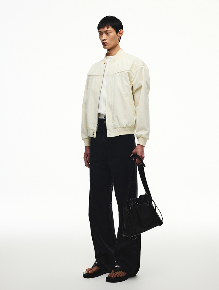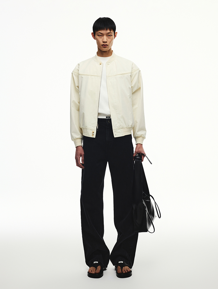 유지 파이핑 디테일 봄버 점퍼 유니섹스 아이보리