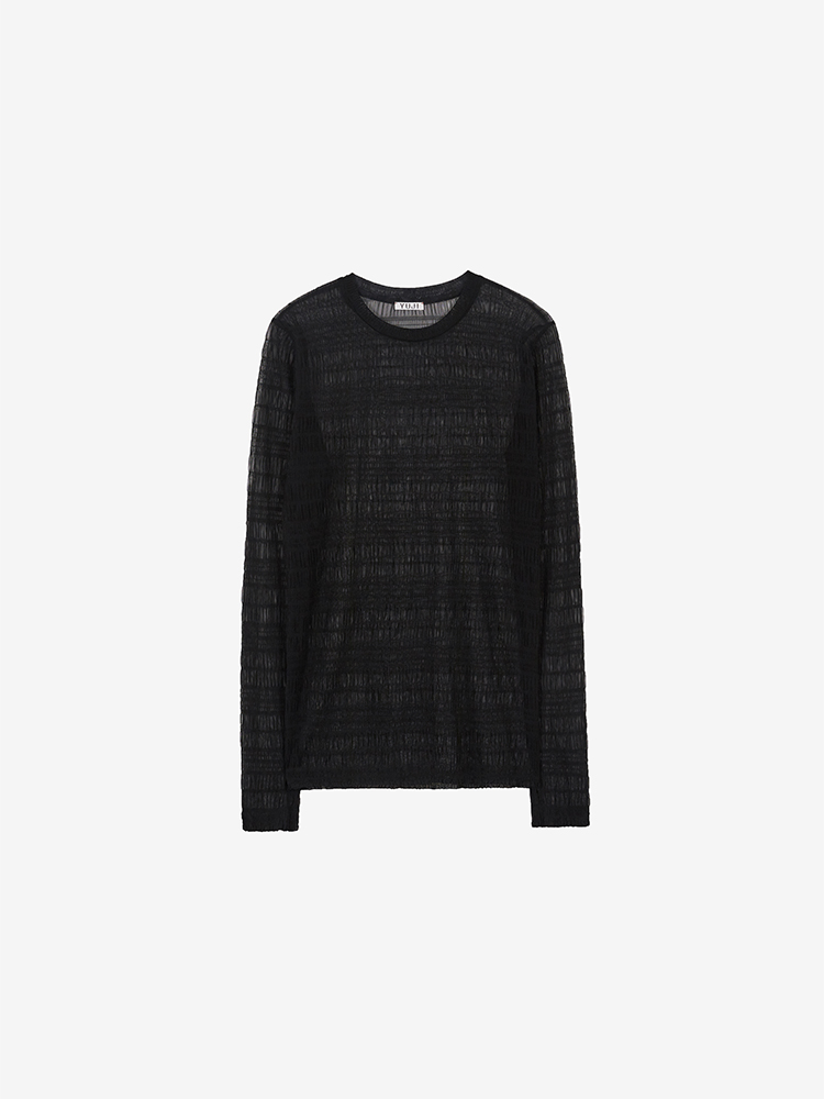 스모킹 기법으로 여성스러운 소재와 몽환적인 느낌의 반 시스루 텍스처의 실루엣입니다. 루즈핏의 쉬어 탑으로 몸을 여성스럽고 우아하게 보여줍니다. SHEER SMOCKING MAXI SKIRT와 셋업으로 연출하는 걸 추천드립니다. SIZE GUIDE XS SIZE / 어깨 34.5cm 가슴 79cm 밑둘레 79cm 소매장 71.8cm 소매통 26.8cm 소매단 16cm 목 넓이 15.5cm 목 길이 7cm 총장 68.5cm S SIZE / 어깨 35.5cm 가슴 84cm 밑둘레 84cm 소매장 73cm 소매통 28cm 소매단 17cm 목 넓이 16cm 목 길이 7.5cm 총장 69.5cm M SIZE 어깨 36.5cm 가슴 89cm 밑둘레 89cm 소매장 74.2cm 소매통 29.2cm 소매단 18cm 목 넓이 16.5cm 목 길이 8cm 총장 70.5cm 치수는 재는 위치에 따라 1-3cm 차이 생길 수 있습니다.