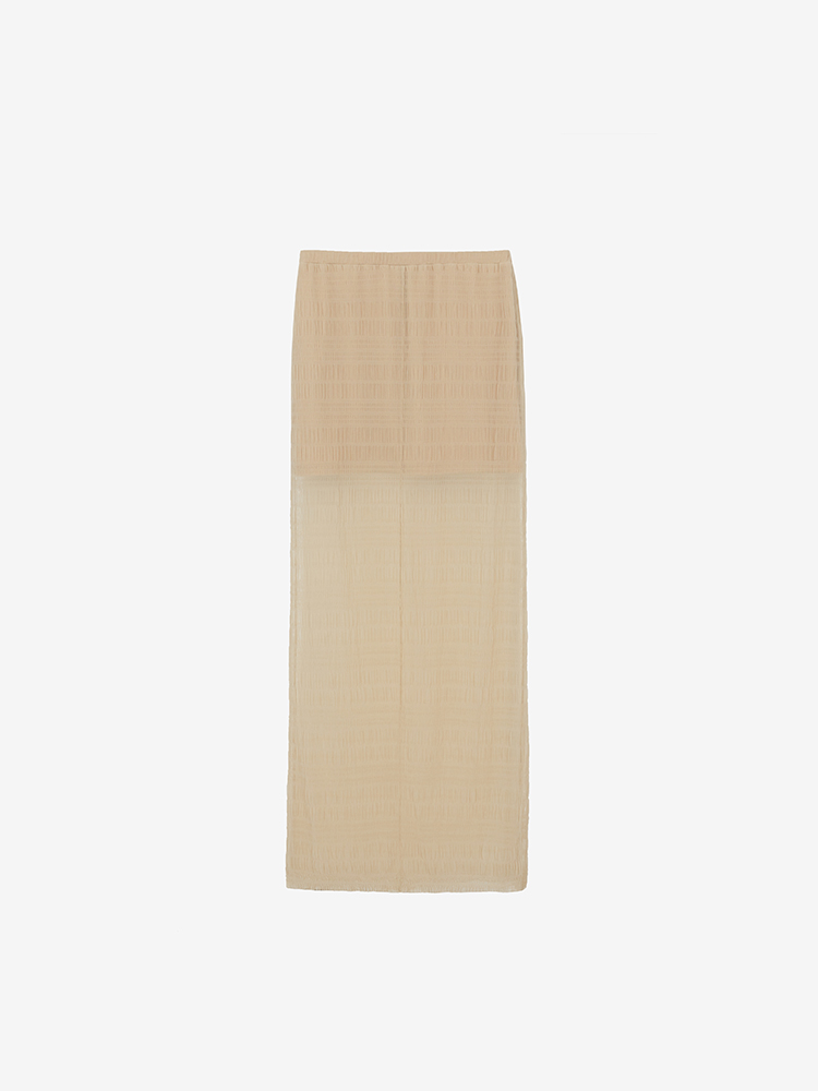 스모킹 기법으로 여성스러운 소재와 몽환적인 느낌의 반 시스루 텍스처로 H라인 실루엣입니다. 여성의 몸을 우아하고 날씬하게 표현해 줍니다. 속바지가 함께 있어서 부담스럽지 않게 착용하실 수 있습니다. 유지 실리콘 프린트 로고와 밴드 사용감으로 착용감이 우수하며 동시에 멋있는 무드를 보여주는 스모킹 맥시 스커트입니다. XS SIZE / 허리 57cm 힙 78cm 앞밑위 75cm 총장 104.5cm S SIZE / 허리 62cm 힙 83cm 앞밑위 80cm 총장 105cm M SIZE / 허리 67cm 힙 88cm 앞밑위 85cm 총장 105.5cm 치수는 재는 위치에 따라 1-3cm 차이 생길 수 있습니다. 모델 착용 사이즈 : M SIZE