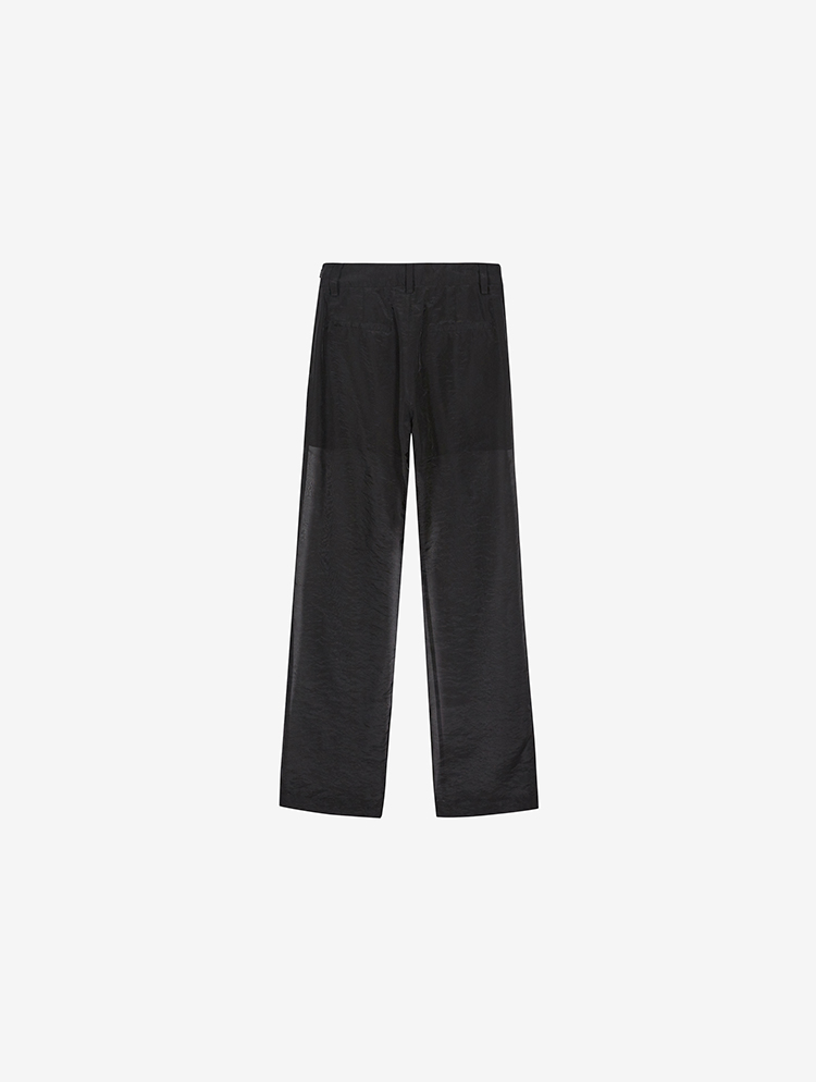 DESCRIPTION 여성스러운 실루엣과 시스루의 소재로 탄탄하고 시원한 텍스처의 오간자 소재를 사용한 팬츠입니다. SHEER ORGANZA RIBBON SHIRTS와 함께 룩북처럼 셋업으로도 착용하실 수 있습니다. SIZE GUIDE S SIZE / 허리 71cm 엉덩이 94.6cm 허벅지 59.7cm 바지부리 44.6cm 앞시리 27.5cm 뒤시리 38.7cm 총장 109cm M SIZE / 허리 76cm 엉덩이 99.6cm 허벅지 62.2cm 바지부리 47.1cm 앞시리 28.1cm 뒤시리 39.3cm 총장 109.6cm 치수는 재는 위치에 따라 1-3cm 차이 생길 수 있습니다. 모델 착용 사이즈 : M SIZE
