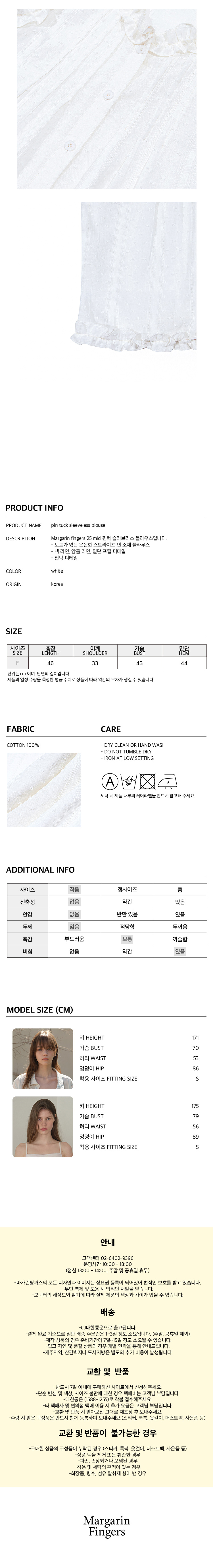 마가린핑거스 핀턱 슬리브리스 블라우스 화이트