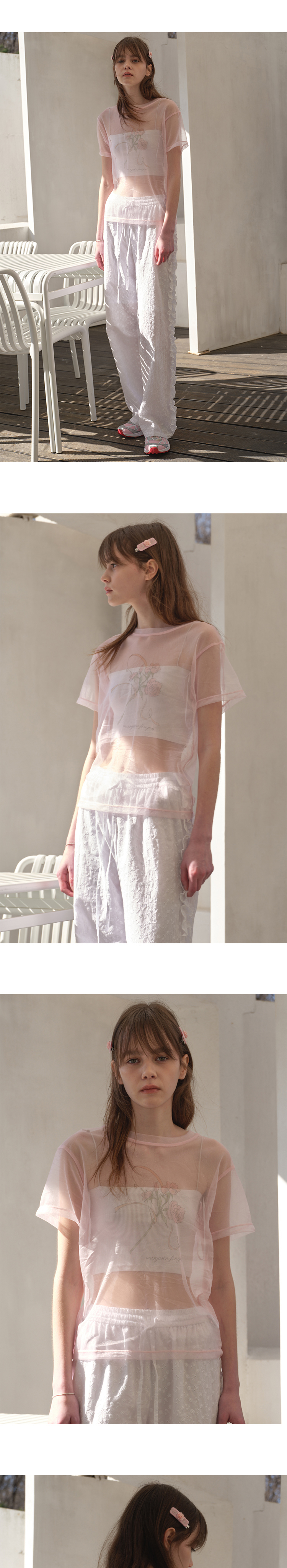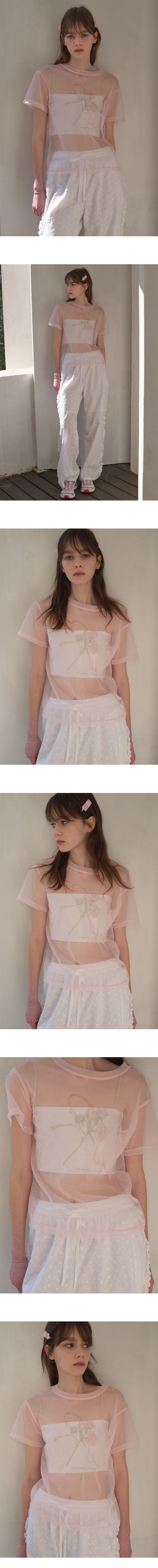 마가린핑거스 로즈 매쉬 티셔츠 라이트 핑크