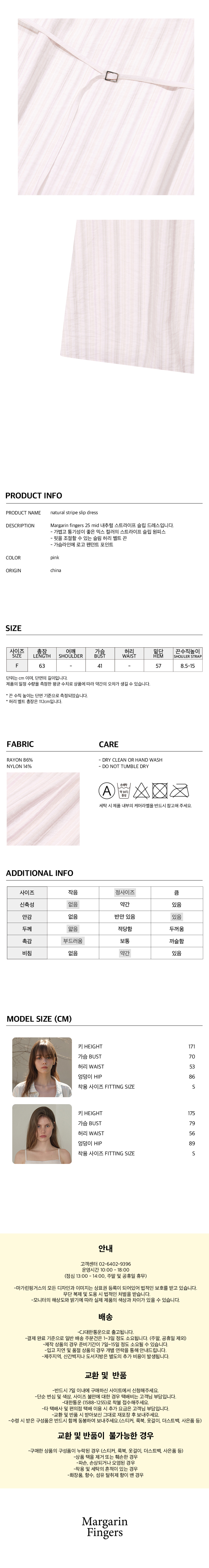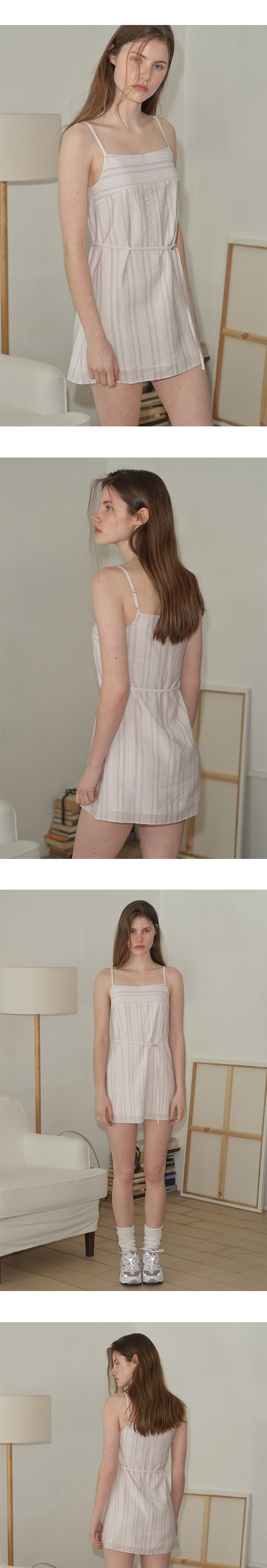 마가린핑거스 내츄럴 스트라이프 슬립 드레스 핑크