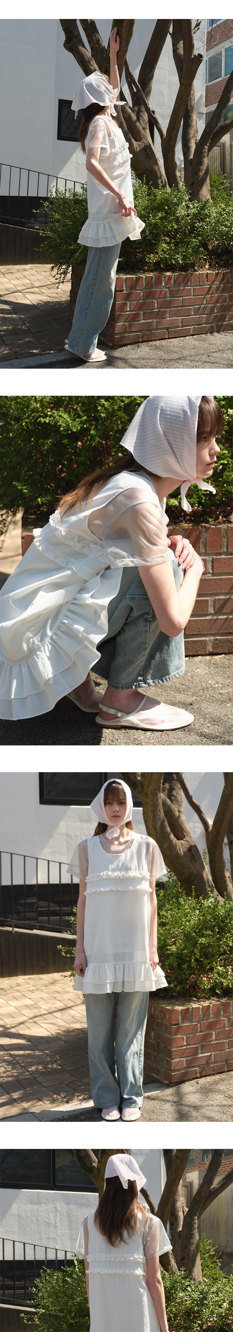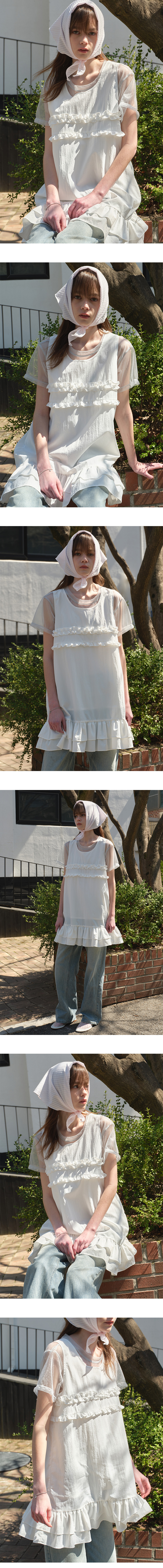 마가린핑거스 믹스드 프릴 미니 원피스 화이트