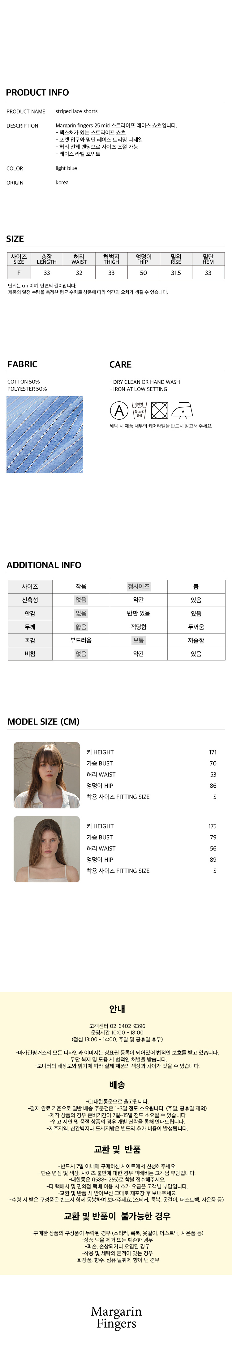 마가린핑거스 스트라이프 레이스 쇼츠 라이트 블루