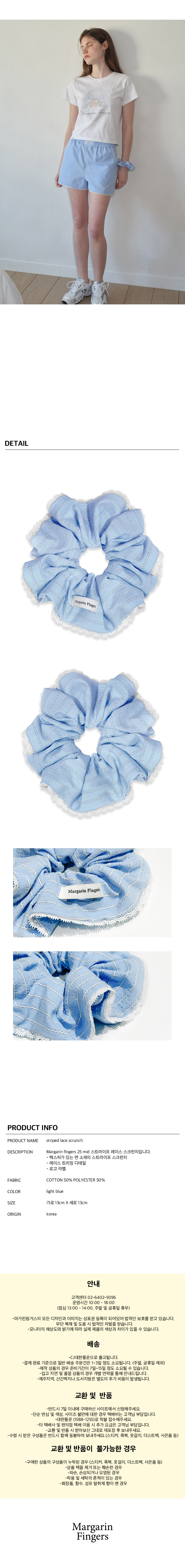 마가린핑거스 스트라이프 레이스 스크런치 라이트 블루
