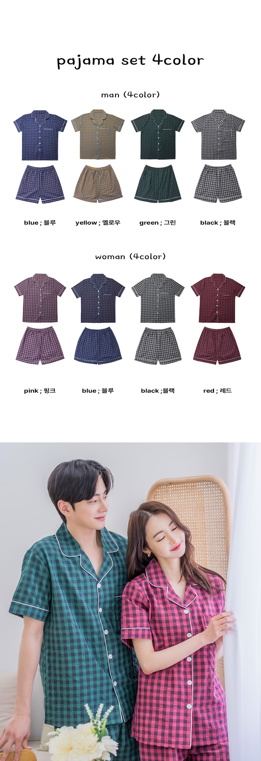 [3% 적립] (W) 에이원 잔체크 반팔 잠옷 세트 블랙