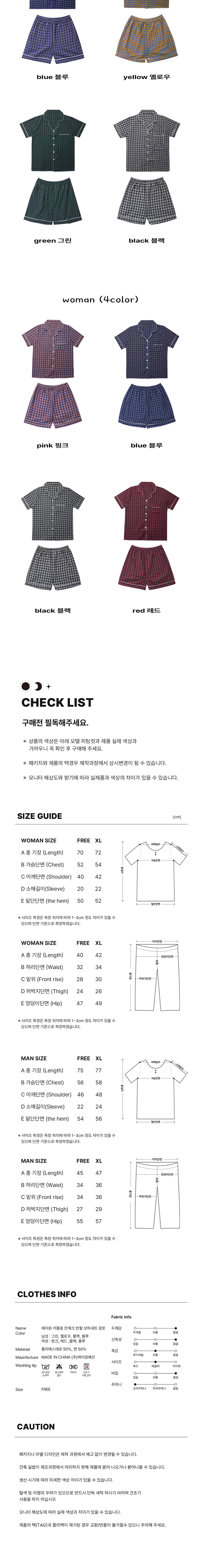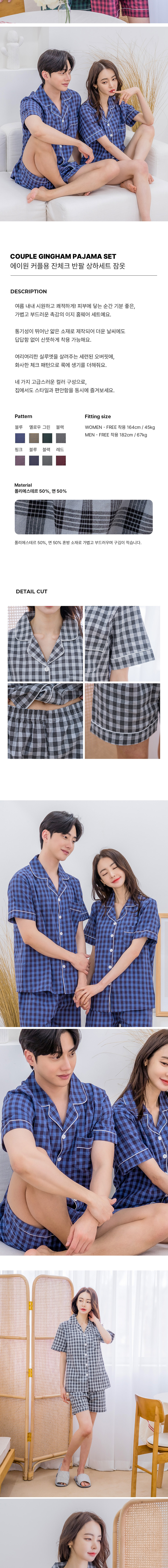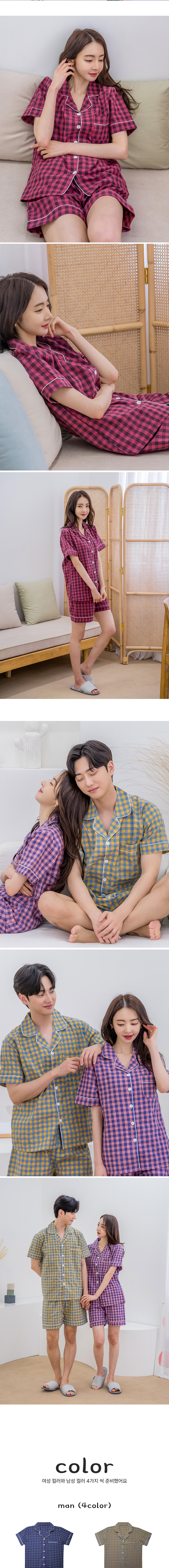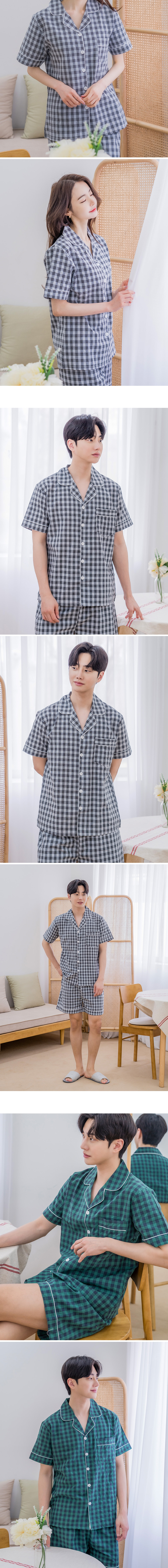 [3% 적립] AONE Jeans Check Short Sleeve Pajamas Set Green