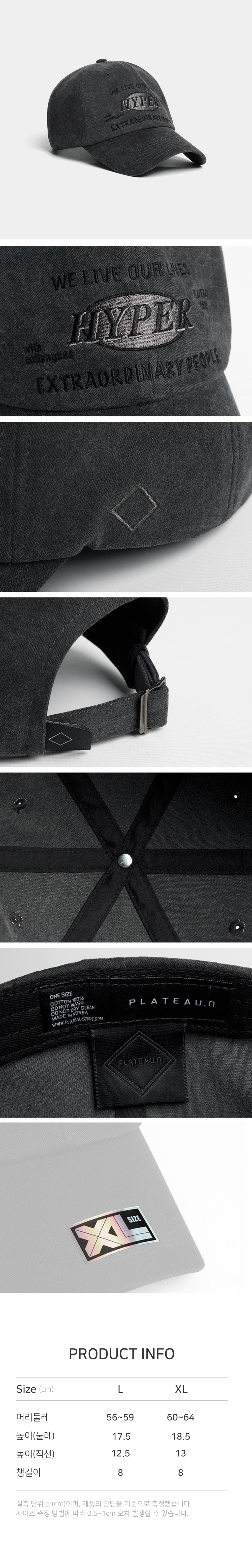 플래토 빅사이즈 볼캡 에이치와이 볼캡 다크 그레이