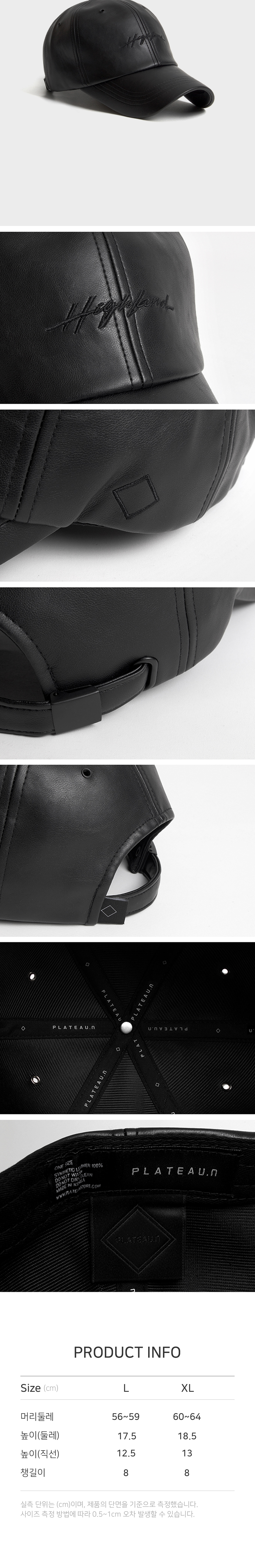 플래토 레더 하이랜드 볼캡 블랙