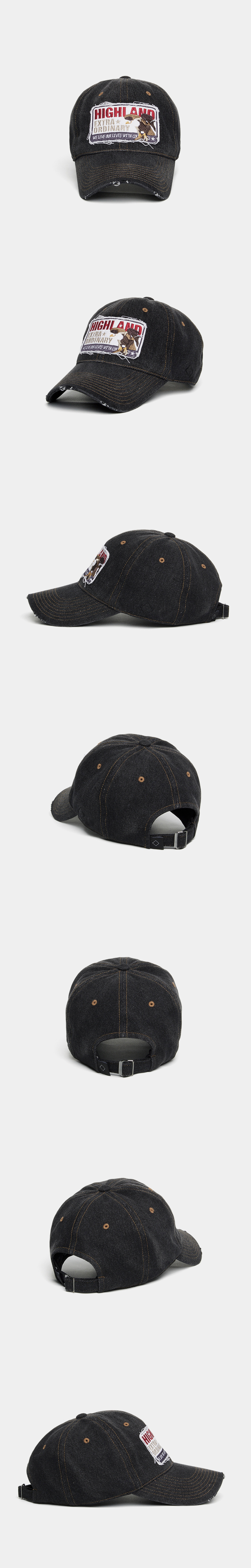 플래토 빅사이즈 볼캡 하이 이에이 데님 볼캡 블랙