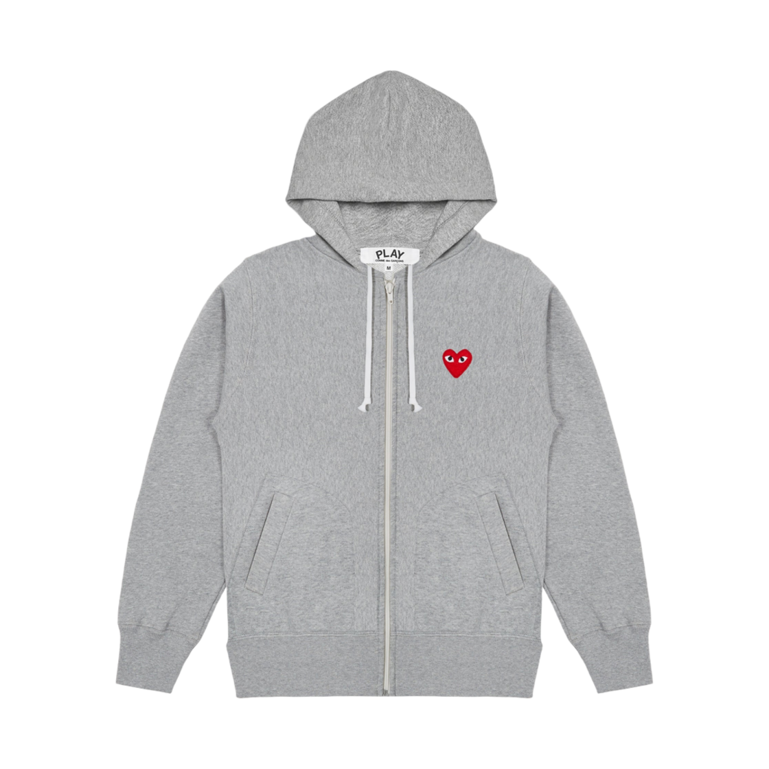Play Comme des Garcons Back Printed Red Heart Zip-Up Hoodie Gray