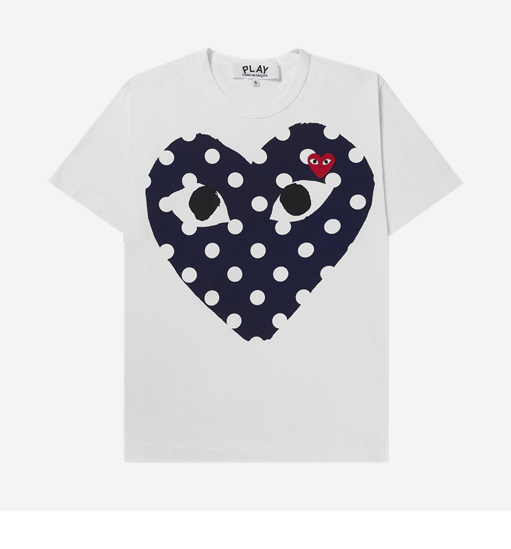 플레이 꼼데가르송 레드 하트 프린트 블루 하트 티셔츠 화이트