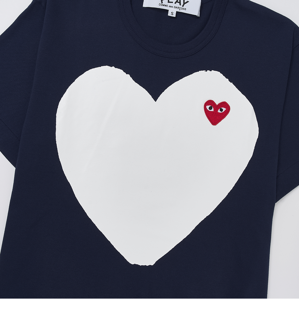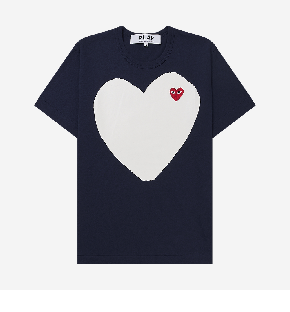 Play Comme des Garcons Red Heart Printed White Heart T-Shirt Navy