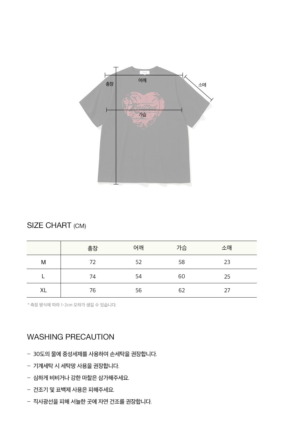 한여름의 해변을 떠올리게 하는 빈티지한 하트 그래픽으로 감성적인 포인트를 더한 반팔 티셔츠입니다. 촘촘하게 짜인 코튼 폴리 혼방 원단으로 부드러우며 땀을 빠르게 흡수하고 건조하는 흡한속건 기능의 안감으로 편안하고 쾌적하게 착용 가능합니다. 릴랙스 핏으로 자연스러운 실루엣을 연출해 주고 베이직한 컬러로 구성되어 데일리 웨어로 활용도가 높습니다.