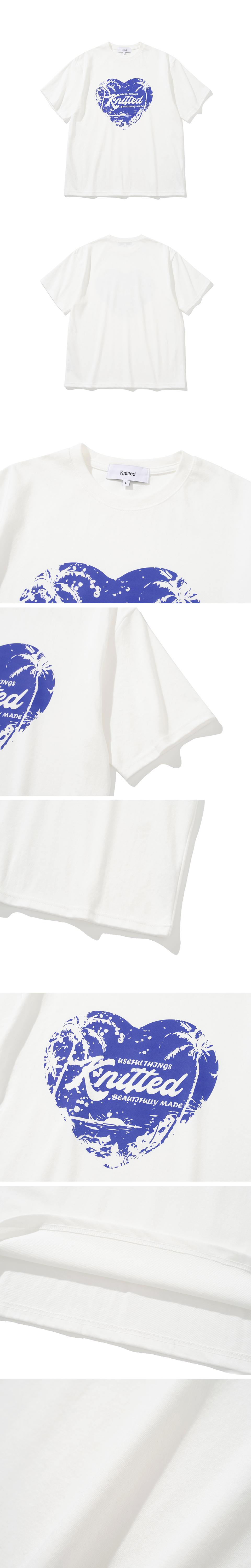 니티드 팜트리 하트 티셔츠 화이트-블루
