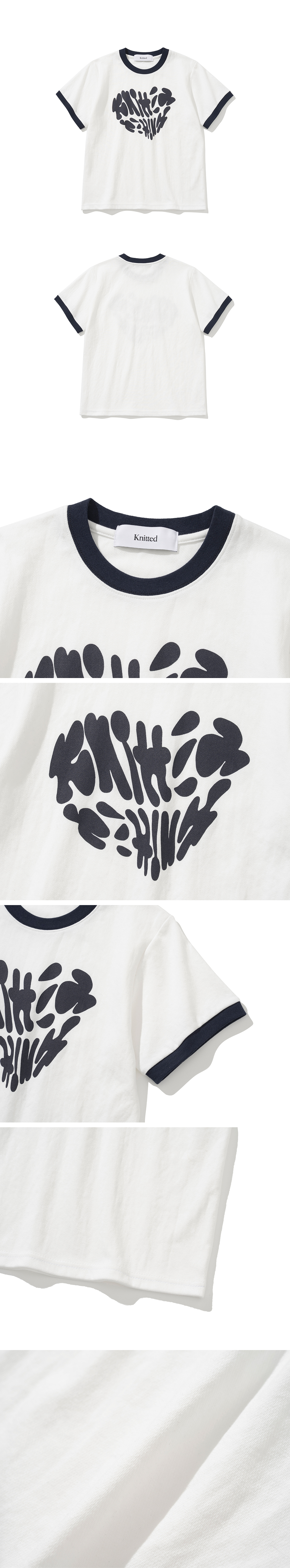 니티드 여성 하트 로고 링거 티셔츠 화이트