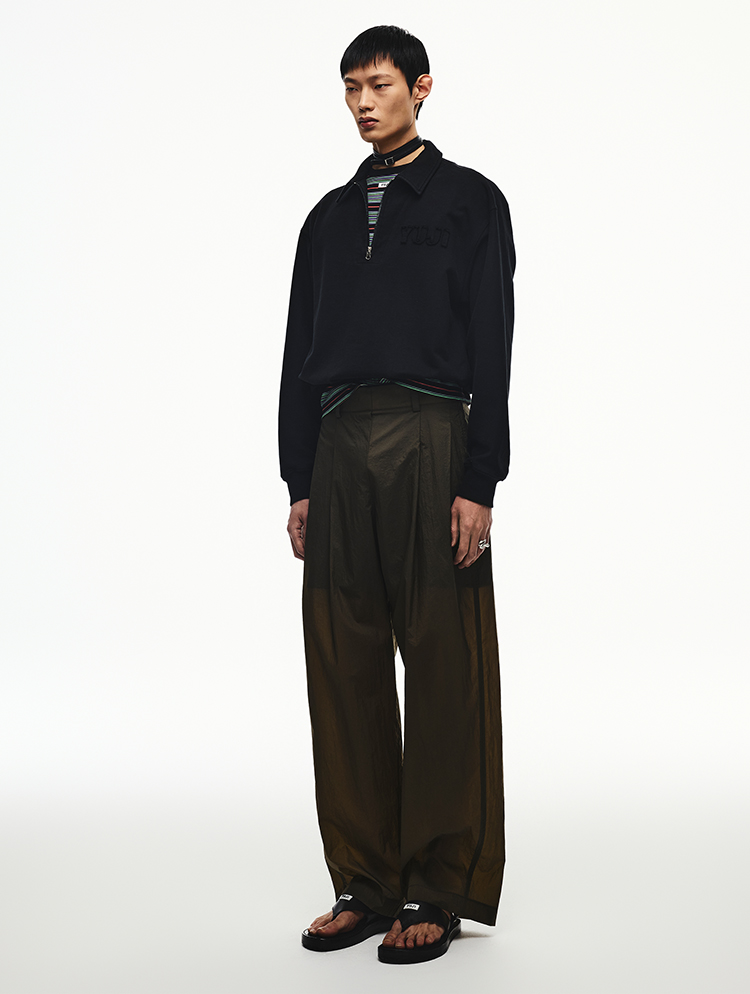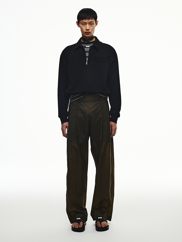 DESCRIPTION 아주 가볍고 실키한 시원한 소재로 사용한 투턱와이드 팬츠입니다. 속바지가 있어 착용하실 때 비침이 부담스럽지 않은 팬츠로 한여름까지 다양한 룩에 매칭하여 착용하실 수 있습니다. SIZE GUIDE S SIZE / 허리 79.1cm 엉덩이 108.8cm 허벅지 73.3cm 바지부리 49.6cm 앞시리 40.4cm 뒤시리 45.3cm 총장 113.8cm M SIZE / 허리 84.1cm 엉덩이 113.8cm 허벅지 75.8cm 바지부리 54.6cm 앞시리 41cm 뒤시리 45.9cm 총장 114.4cm L SIZE / 허리 89.1cm 엉덩이 118.8cm 허벅지 78.3cm 바지부리 59.6cm 앞시리 41.6cm 뒤시리 46.5cm 총장 115cm 모델 착용 사이즈 : M SIZE