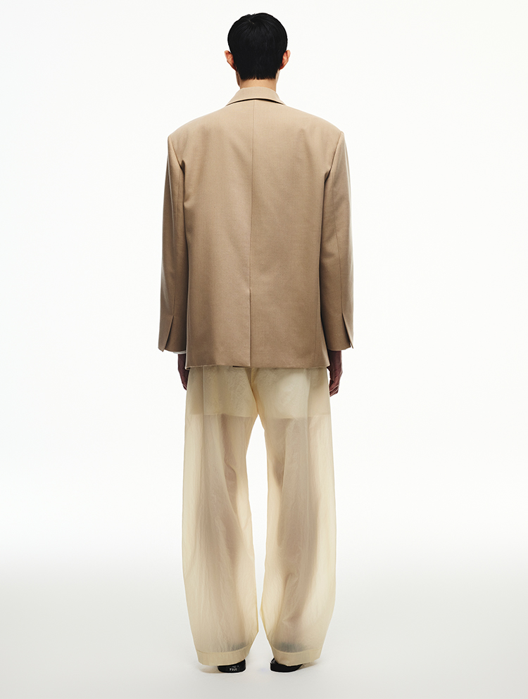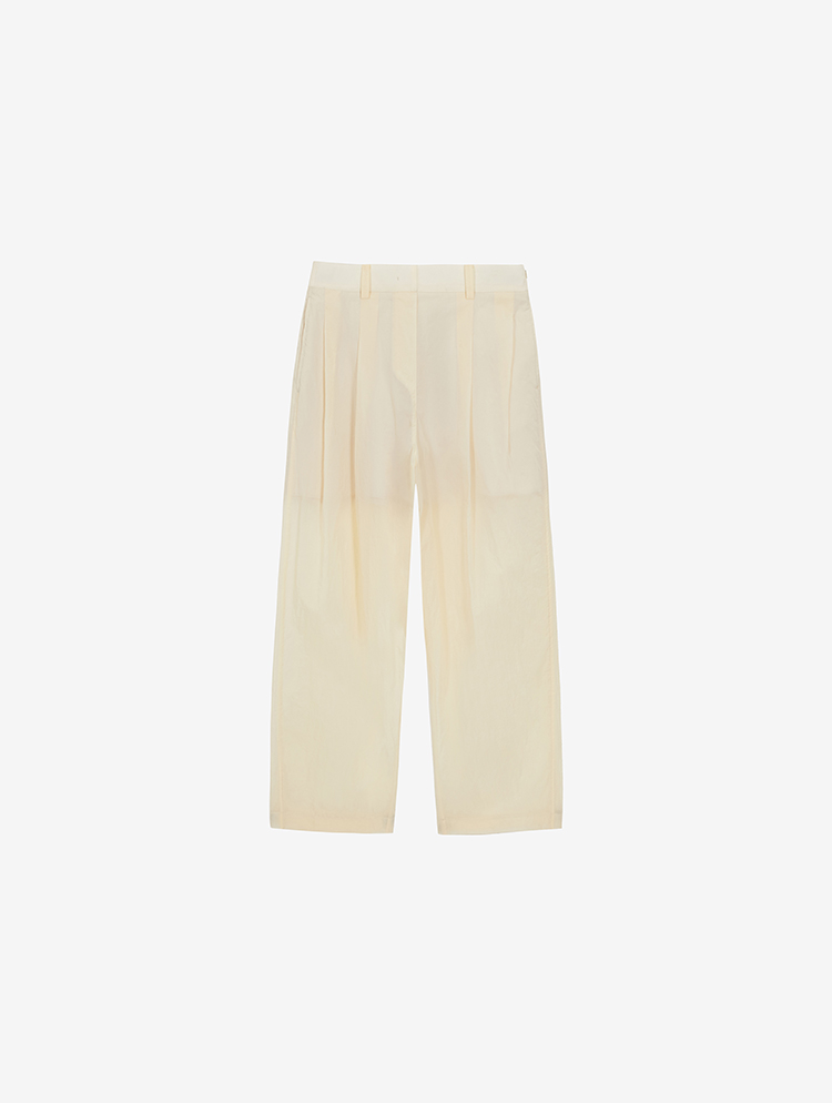 YUJI See-Throuigh Two Tucked Wide Trousers Butter Yellow