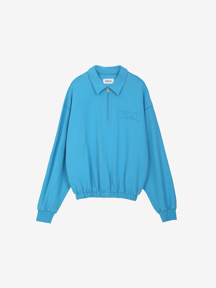 YUJI Mens Yuji Signature Half Zip-Up Sweatshirt Island Blue