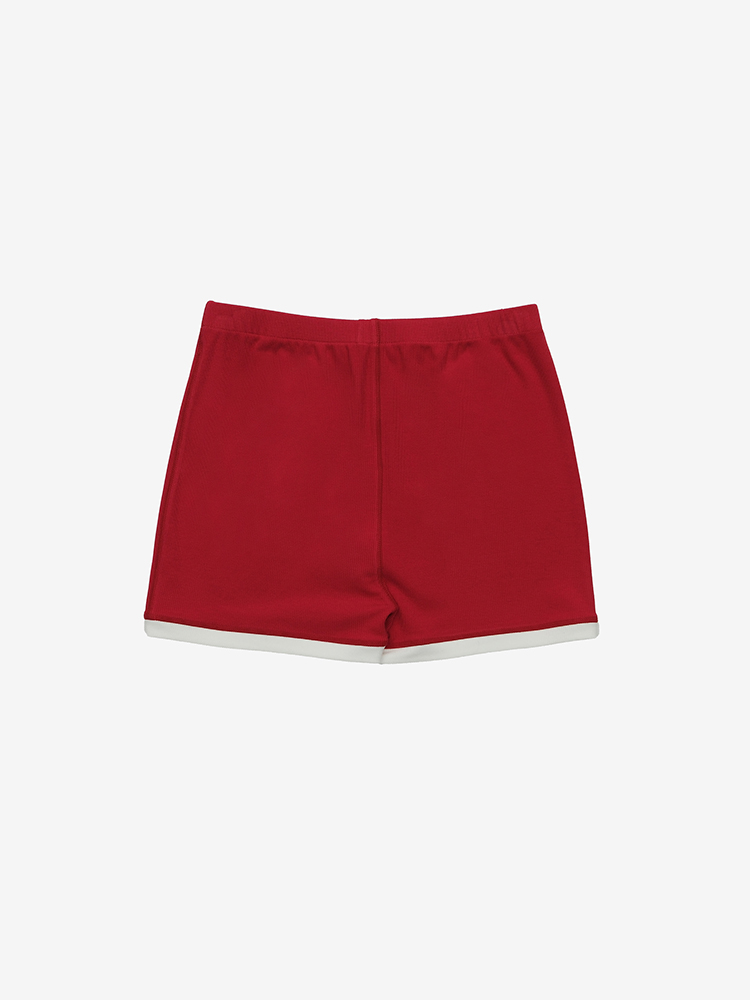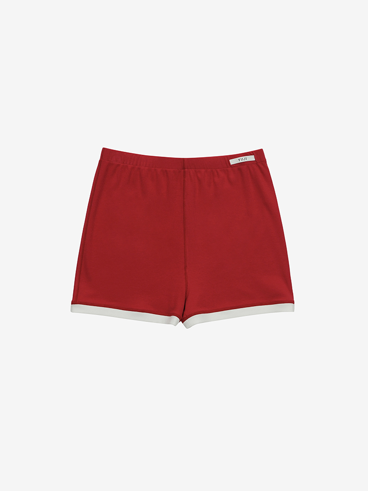 링거티에서 영감받은 숏한 기장의 우먼 쇼츠입니다. 실리콘 프린트 기법의 유지로고 장식의 밴드를 사용하여 활동감이 편합니다. SIZE GUIDE S SIZE / 허리 60cm 힙 79cm 앞밑위 25cm 뒷밑위 31cm 밑단 44cm 총장 31cm M SIZE / 허리 65cm 힙 84cm 앞밑위 25.6cm 뒷밑위 31.6cm 밑단 46cm 총장 31.5cm 치수는 재는 위치에 따라 1-3cm 차이 생길 수 있습니다. 모델 착용 사이즈 : S SIZE