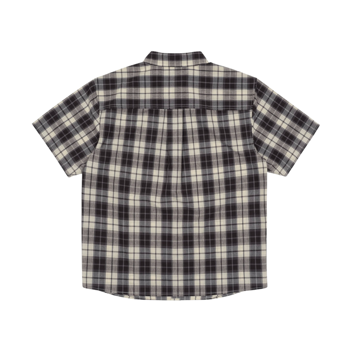 더콜디스트모먼트 미니 로고 체크 하프 셔츠 브라운