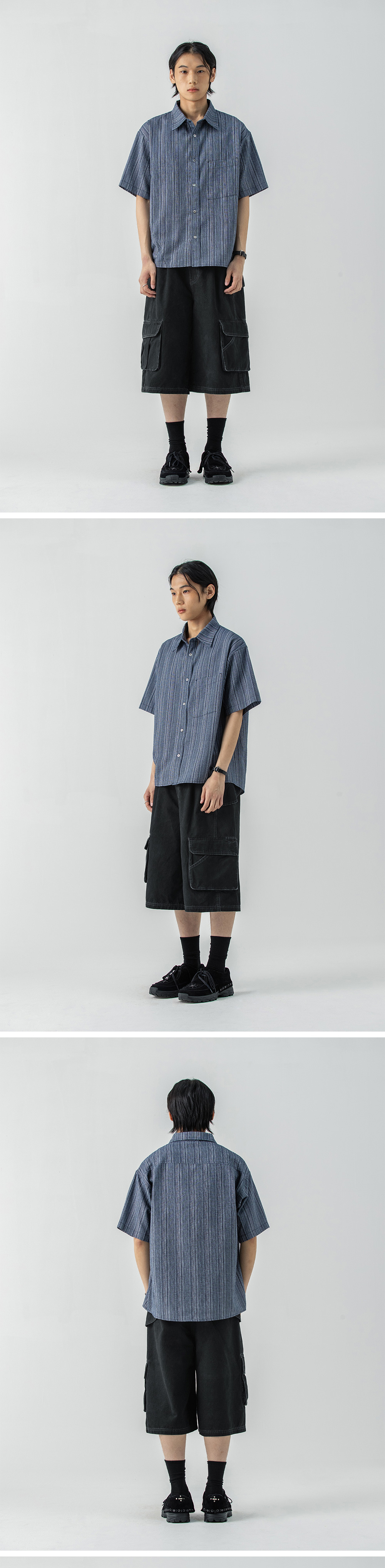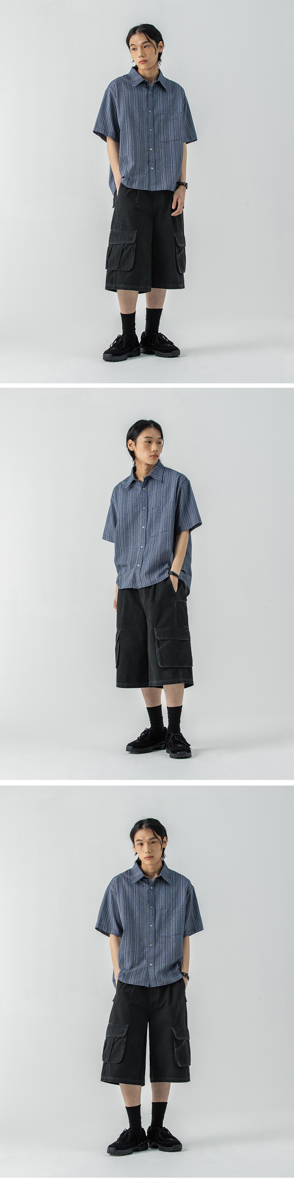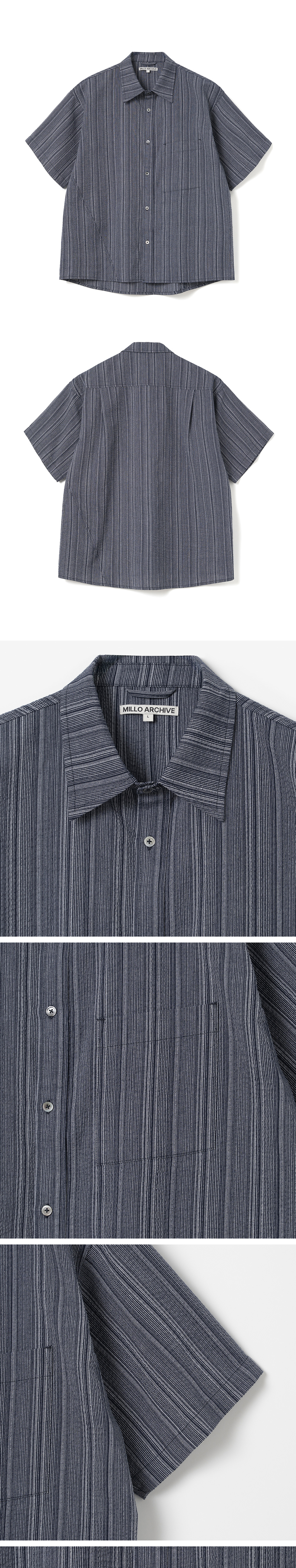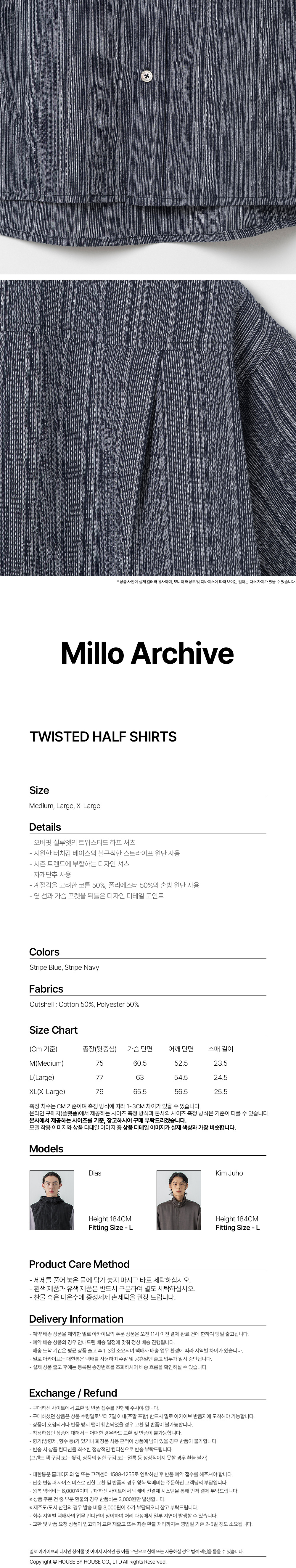 밀로 아카이브 트위스티드 하프 셔츠 스트라이프 네이비