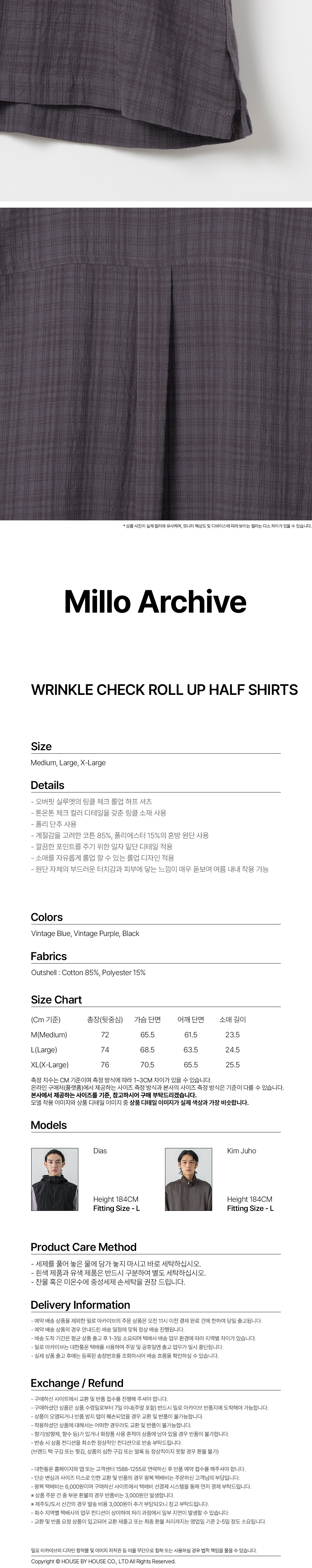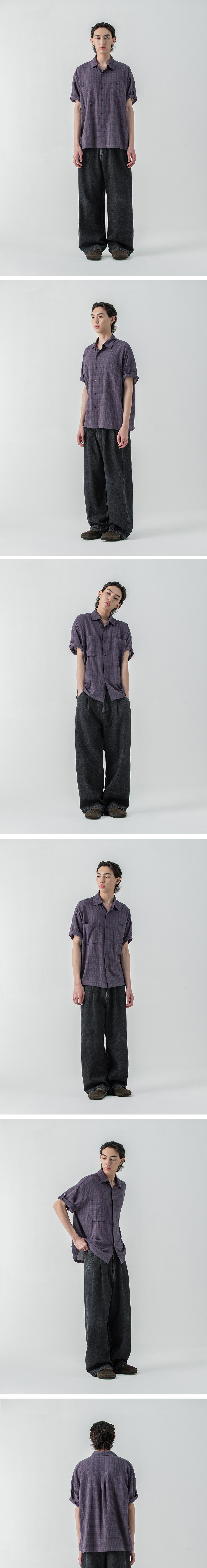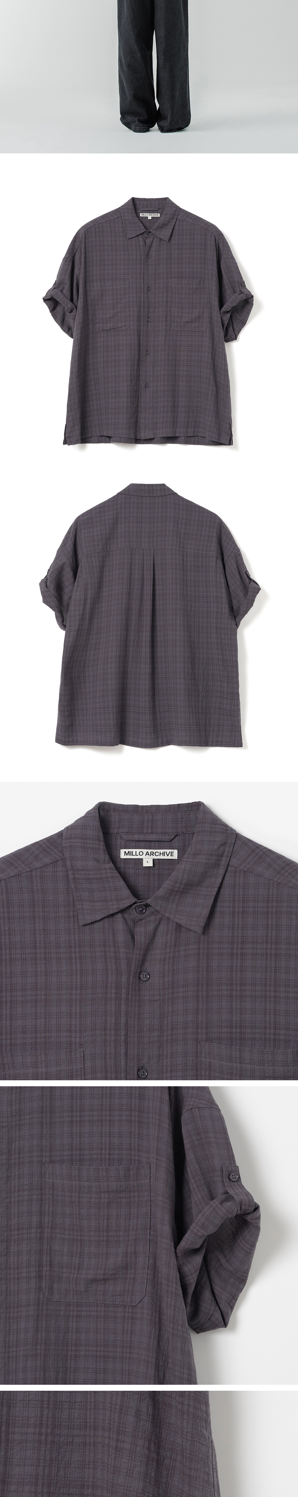 밀로 아카이브 링클 체크 롤업 하프 셔츠 빈티지 퍼플