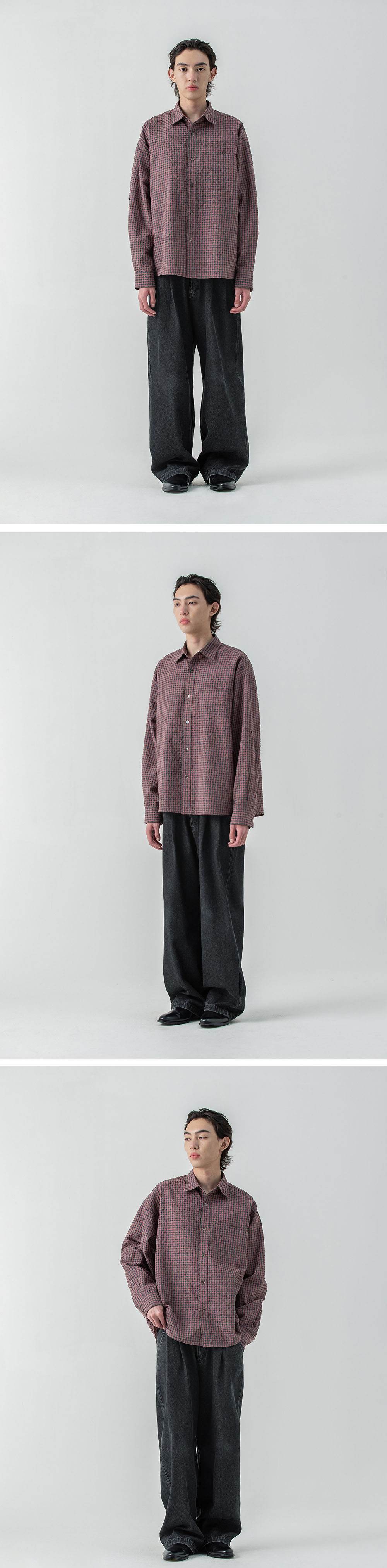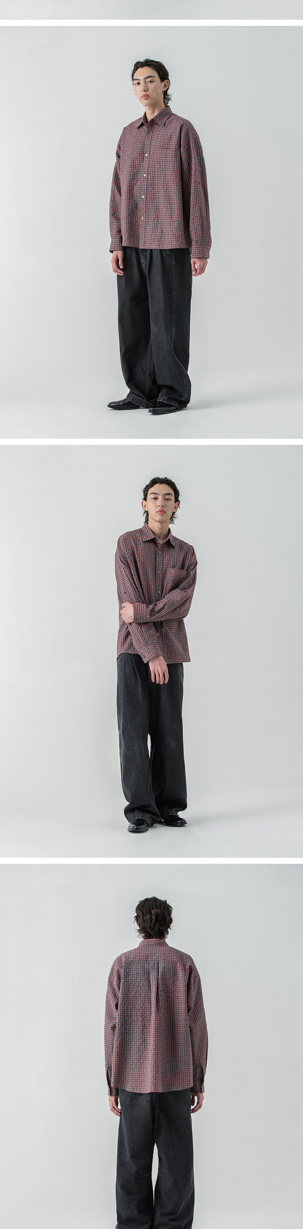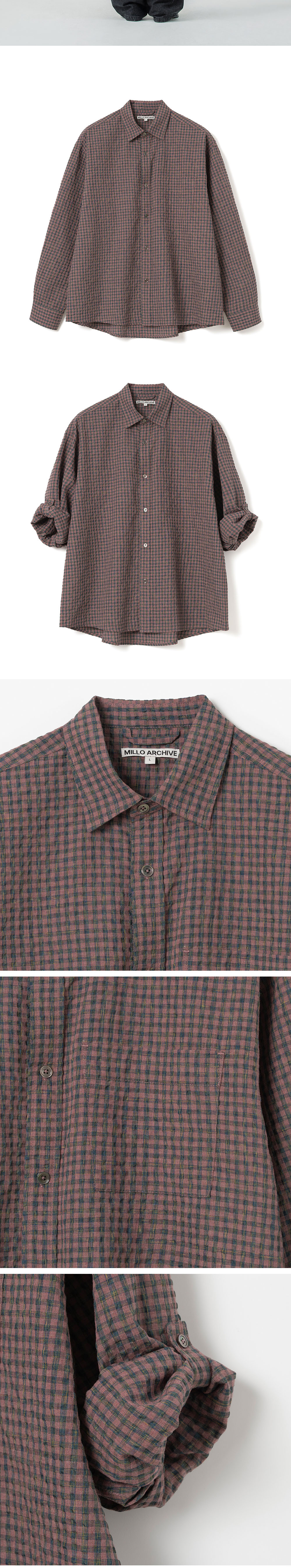 Millo Archive Box Check Roll Up Shirts Smoke Pink
