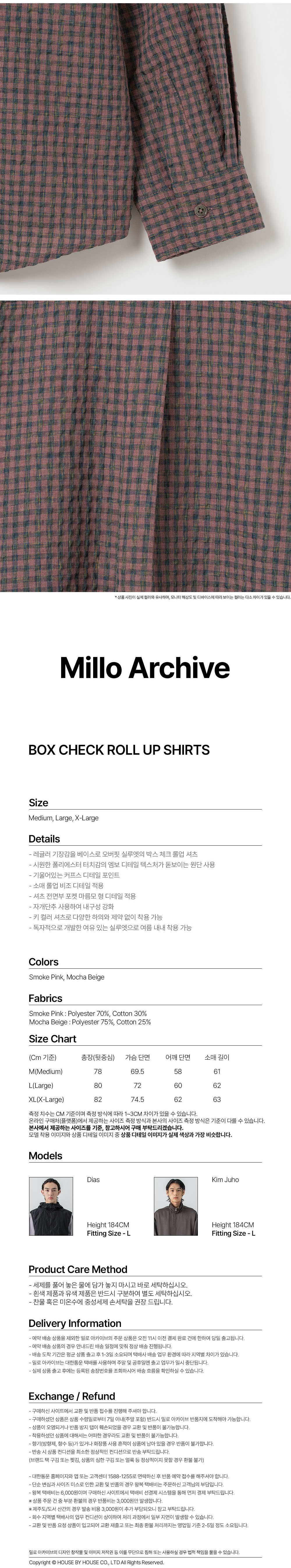 밀로 아카이브 박스 체크 롤업 셔츠 스모크 핑크
