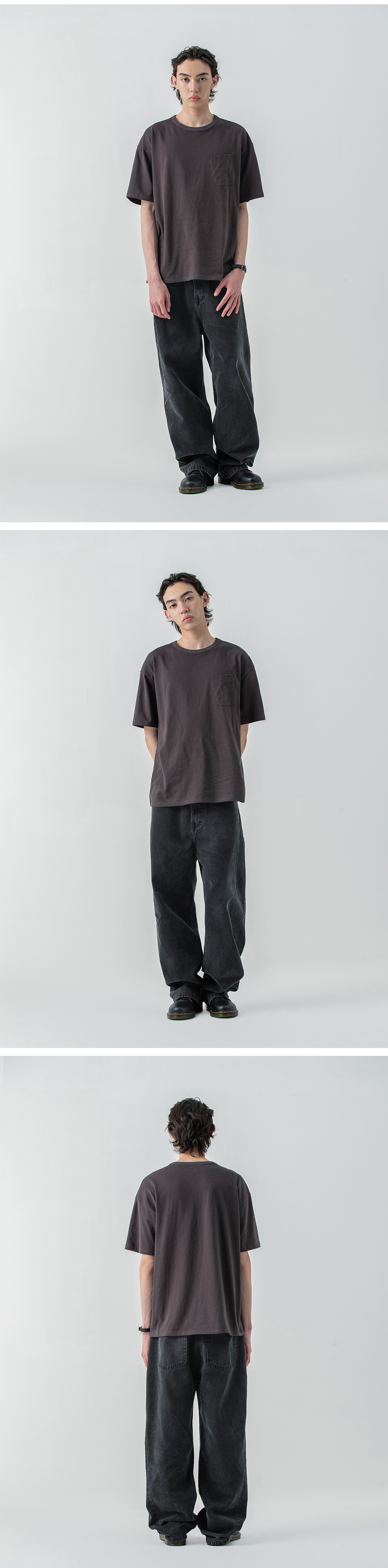 밀로 아카이브 스트라이프 포켓 티셔츠 빈티지 브라운