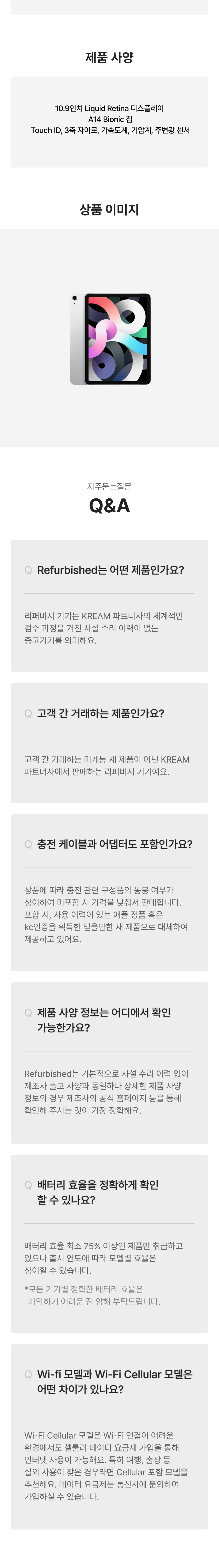 [S등급] 리퍼비시 아이패드 에어 4세대 wifi A14 Bionic 64기가 실버